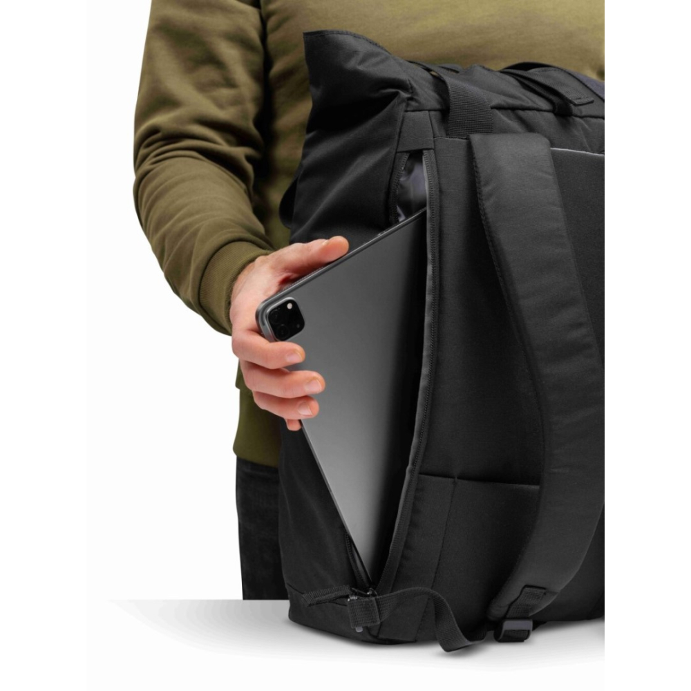 Praktický boční vstup umožňuje rychlý a snadný přístup k zařízení bez nutnosti otevírat celý batoh. Batoh vyniká svou variabilitou – lze jej nosit klasicky na zádech nebo pohodlně v ruce jako tašku. Polstrované ramenní popruhy lze navíc jednoduše schovat, což oceníte zejména na cestách. Zadní popruh umožňuje snadné připevnění k madlu kufru.