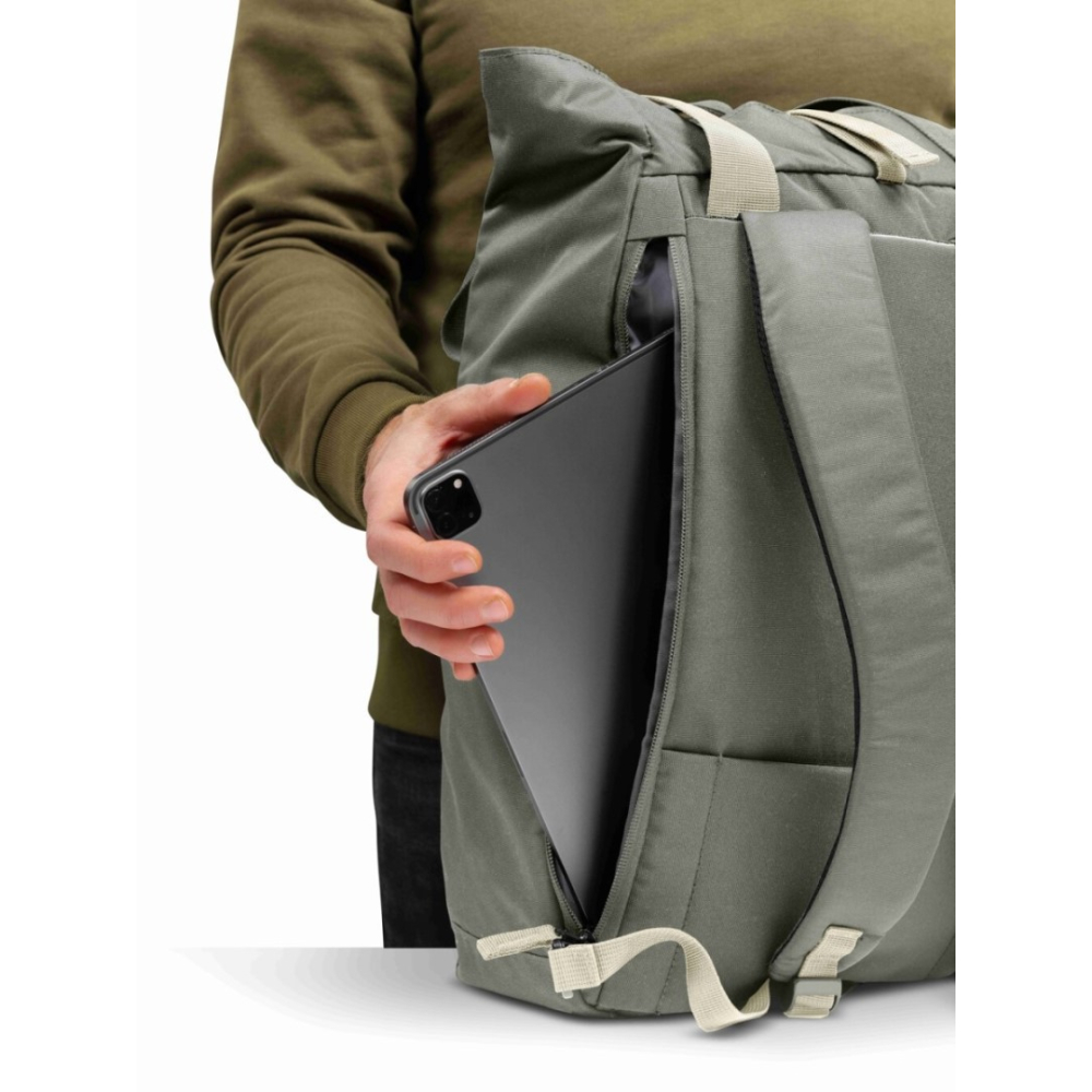 Praktický boční vstup umožňuje rychlý a snadný přístup k zařízení bez nutnosti otevírat celý batoh. Batoh vyniká svou variabilitou – lze jej nosit klasicky na zádech nebo pohodlně v ruce jako tašku. Polstrované ramenní popruhy lze navíc jednoduše schovat, což oceníte zejména na cestách. Zadní popruh umožňuje snadné připevnění k madlu kufru.