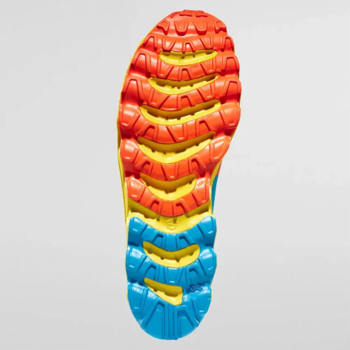 Podešev z odolné gumy FriXion® Blue zajišťuje výbornou životnost i na abrazivních površích, zatímco masivní pěnová mezipodešev efektivně tlumí nárazy a přispívá k pohodlnému došlapu. Bezešvý, extrémně prodyšný svršek se přizpůsobí tvaru nohy a poskytuje maximální komfort i během delšího nošení.