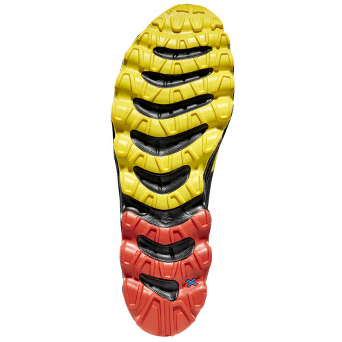 Podešev z odolné gumy FriXion® Blue zajišťuje výbornou životnost i na abrazivních površích, zatímco masivní pěnová mezipodešev efektivně tlumí nárazy a přispívá k pohodlnému došlapu. Bezešvý, extrémně prodyšný svršek se přizpůsobí tvaru nohy a poskytuje maximální komfort i během delšího nošení.