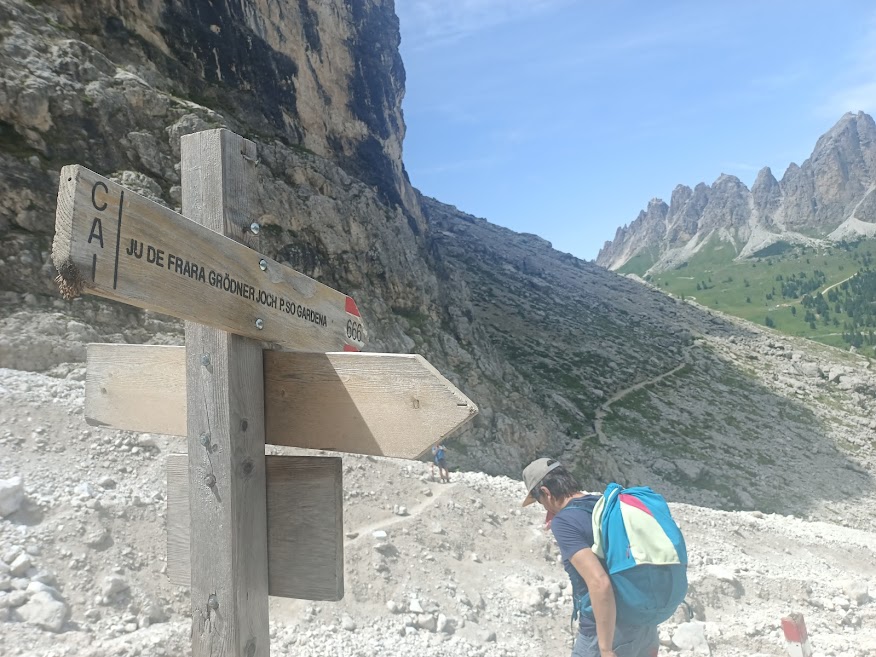 Věděli jsme přesně, kam se musíme dostat. Parkoviště již bylo z loňska ověřené. Nalézá se v údolí Val Gardena, cca 3 km za sedlem Passo Gardena. Tato oblast je známá jako Sella Ronda svou dlouhou zimní lyžařskou trasou. Parkoviště slouží jako výchozí bod k mnoha aktivitám. Přímo u parkoviště zurčí horský potok, tudíž hygiena je zajištěná a jsou tady turecké záchody, což eliminuje nástrahy v okolí. O toaletu se údržba v rámci možností starala výborně.