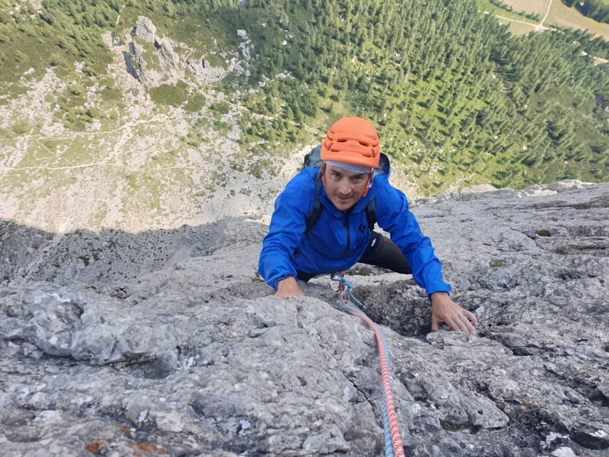 Stěna směrem doprava, pojmenovaná Eiszeit. Zřejmě podle trvale ležící sněhové plotny, která je ovšem z pohledu fotky v průvodci třetinová. Převislá plochá deska, je mokrá ještě víc. Cesty jsou tady od 6c, ale hlavním tahákem jsou těžší nekonečně dlouhé cesty. Až 40 metrů. Silnější tým se pokouší lézt v levém sektoru, já jistím a kochám se. Nádherné výhledy, neuvěřitelné druhy rostlin kvetou všude. Já jsem šťastná a výkoňáci nadávají na vlhko. Bohužel předpověď neříká nic hezkého, jedna bouřka za druhou, déšť.