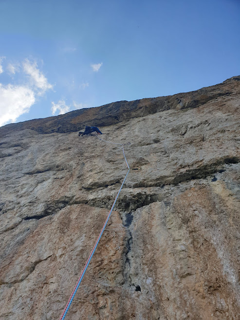 V dohledu parkoviště jsou dvě lezecké oblasti, které ovšem nejsou pro žádnou lezeckou přípravku. Lehčí cesta zde prakticky nejsou. Co já tady budu dělat? Z pohledu ke skalám vlevo, po stejné cestičce, která vede k nástupu na ferratu je první oblast v průvodci pojmenovaná Tridentina cesty jsou až na pár vyjímek od 6b. Při bližším pohledu je ovšem z větší části po předešlých deštích mokrá.