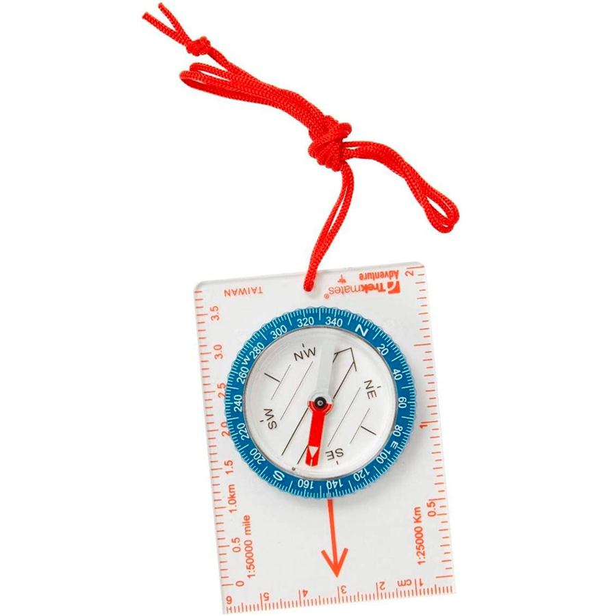 Buzola s kompasem na průhledné plastové základně. Spolu s mapou pomáhá buzola se správnou navigací a orientací v terénu. Na základně buzoly se nachází otočné kolečko s luminiscenčními body označujícími světové strany a poledníkové linie. Vyvážená kovová střelka je v kapalinové kapsli a ukazuje na severní magnetický pól Země. Základní deska obsahuje měřítko v milimetrech. Součástí je šňůrka pro zavěšení na krk.