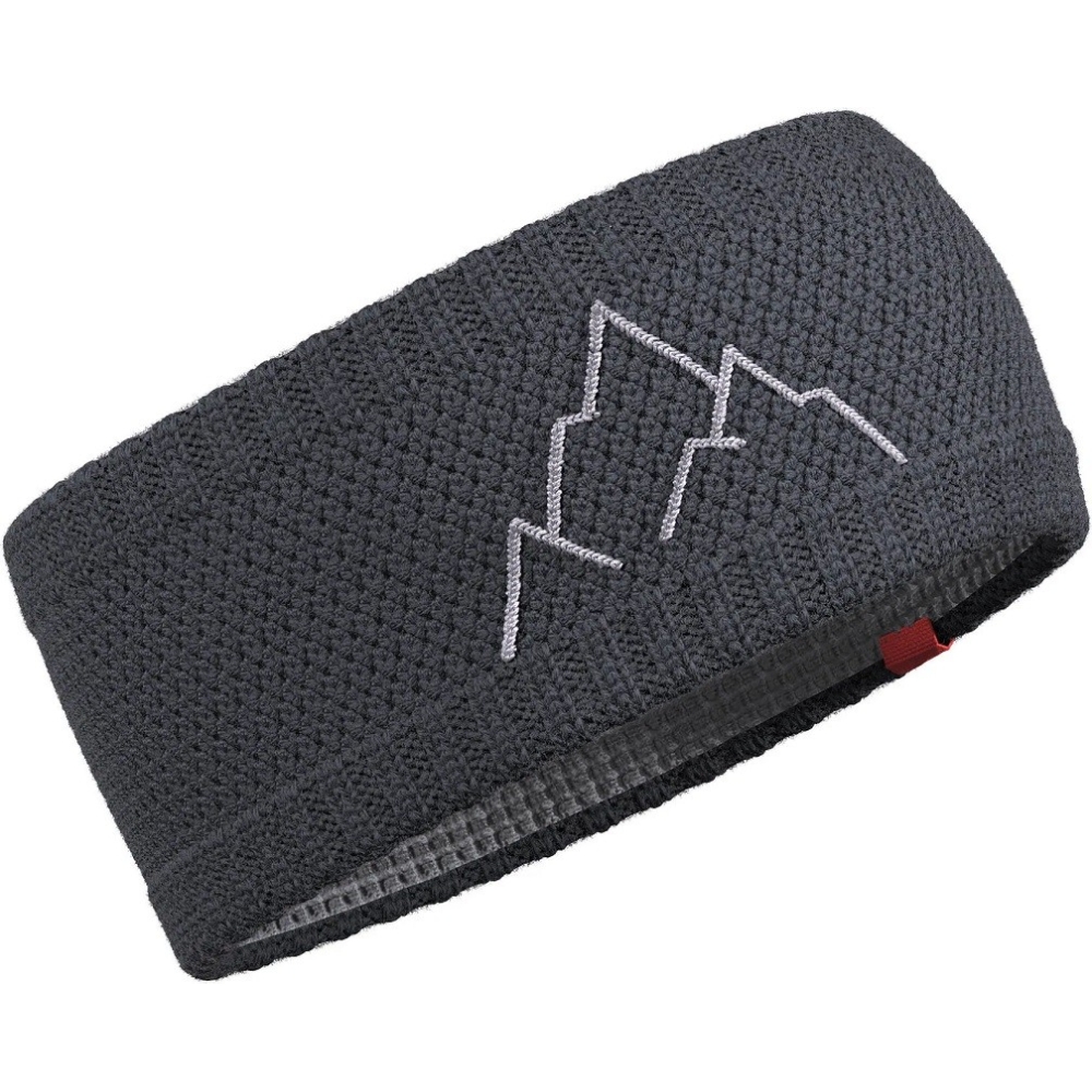Pletená čelenka z merino vlny s barevně kontrastní výšivkou. Na vnitřní straně má čelenka funkční syntetickou podšívku. Klasický způsob pletení čelenky přechází na krajích k žebrovanému úpletu , který se dobře přizpůsobí obvodu hlavy a zároveň působí jako dekorativní prvek. Moderní design čelenky v přírodním materiálu dokresluje kontrastní výšivka hor.