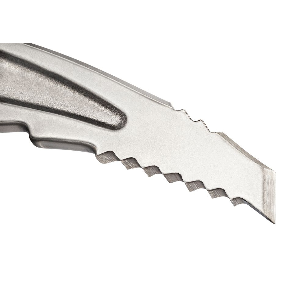 Hlava a hrot jsou kovány za tepla z nerezové oceli a zajišťují solidní zásek. Hrot má na špičce tloušťku 3 mm, je odolný a opatřený zuby na špičce, snadno pronikne tvrdým sněhem a ledem, od špičky směrem ke středu se rozšiřuje, aby usnadnil kotvení v měkkém sněhu.