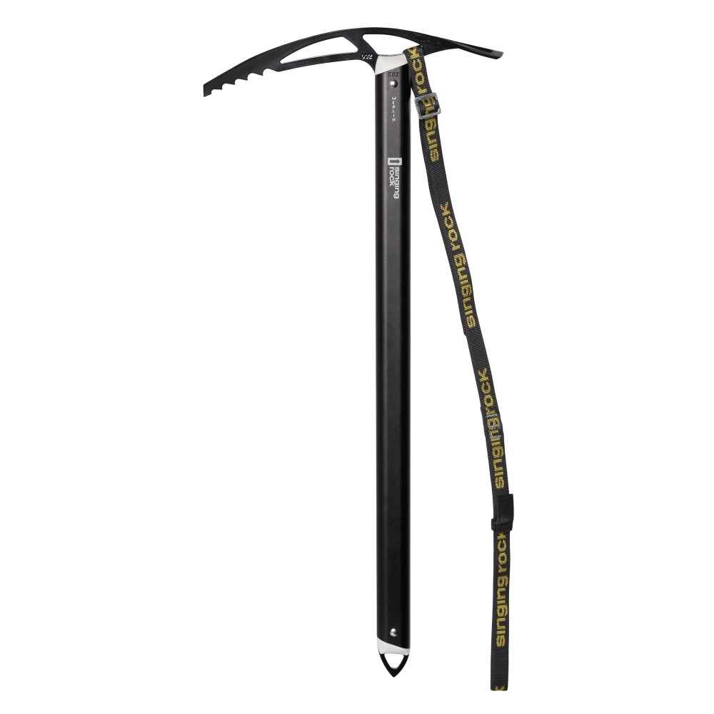 Ergonomický tvar hlavy cepínu pro pohodlné držení při chůzi. Otvory v hlavě cepínu a spodním hrotu jsou vhodné pro připojení karabiny.