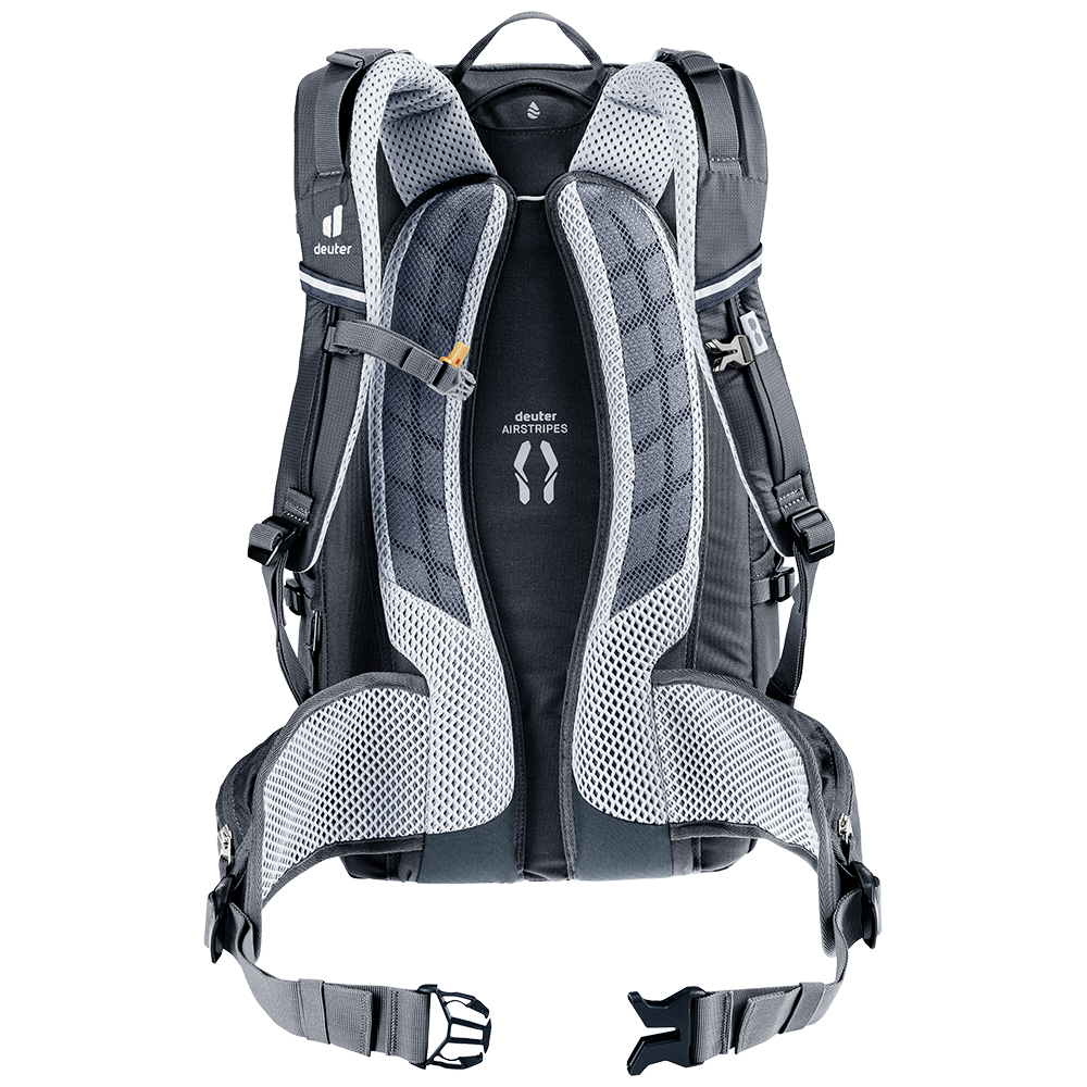 Batoh je vybaven ověřeným zádovým systémem Airstripes s hliníkovými výztuhami, který zajišťuje stabilní a bezpečné uchycení na zádech – oceníte ho jak při dlouhých jízdách, tak i v náročných sjezdech. Dvoucestný hrudní popruh a bederní pás se zipovou kapsou zajišťují dokonalé přitažení k tělu. Dva pěnové pruhy s prodyšnou síťovinou minimalizují kontakt se zády a díky komínovému efektu poskytují maximální ventilaci.