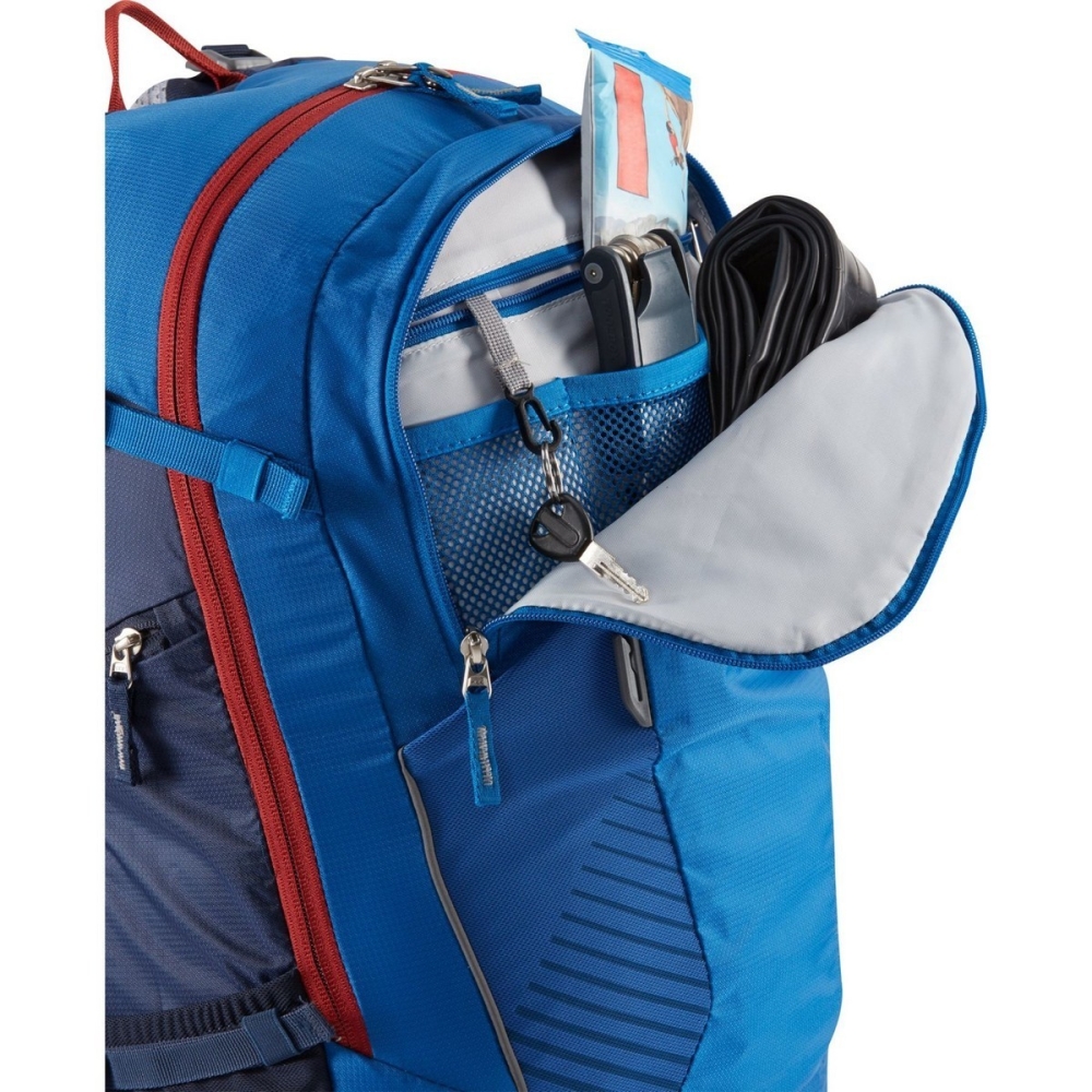 Batoh má kapsu na cyklo nářadí, kapsu na pumpičku, kapsu na mobil a mapu, dvě elastické kapsy na chrániče holení a držák na helmu. Pro minimalisty se nabízí spodní komora jako uložiště pro spacák.