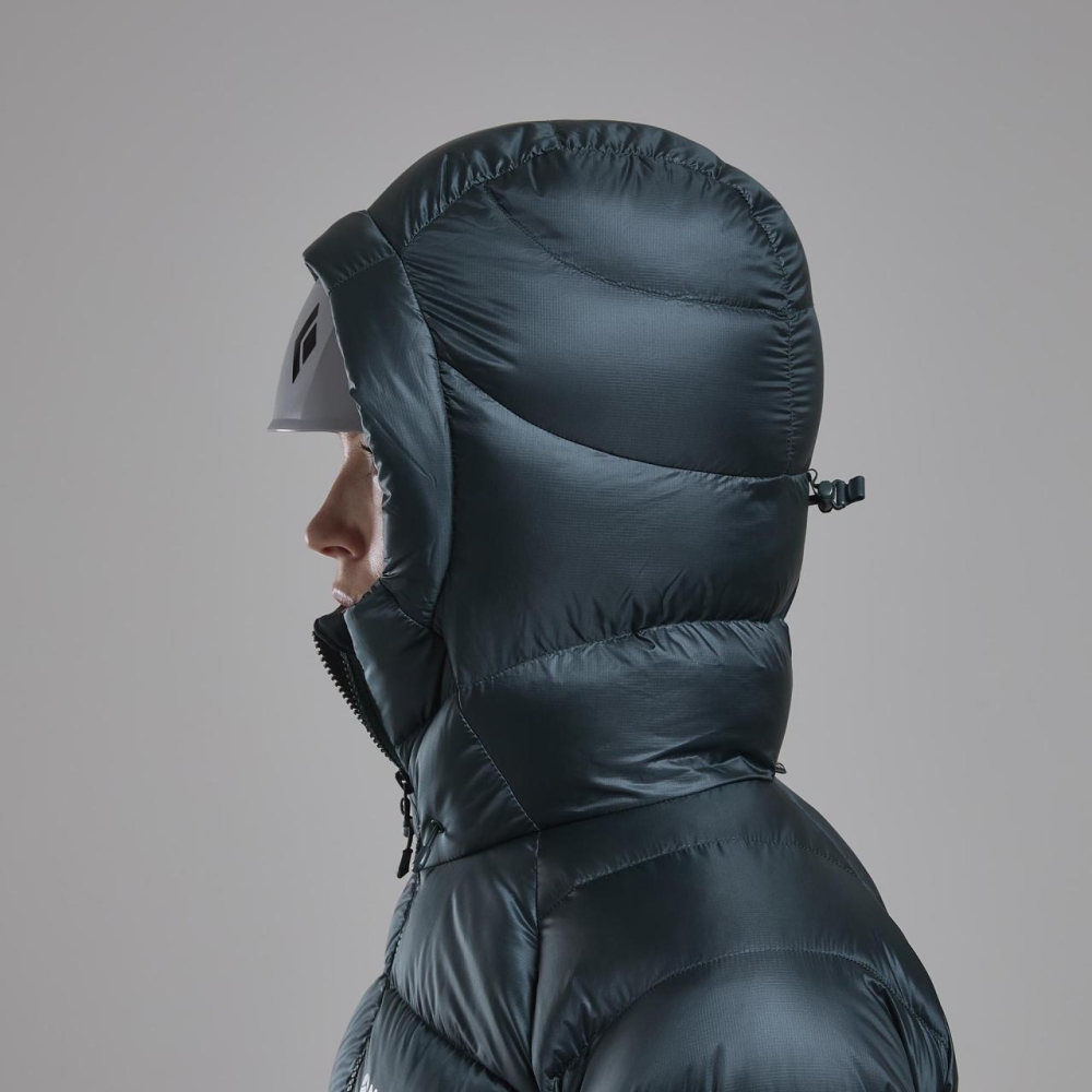 Prošívaná komorová konstrukce pro eliminaci sesypání výplně. Plně nastavitelná zateplená kapuce, kompatibilní s lezeckou přilbou. Dvoujezdcový zip YKK VISLON krytý vnitřní légou.