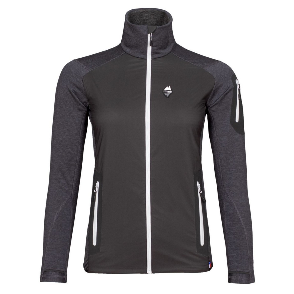 Bunda High Point Merino Alpha Lady Jacket má dvě spodní kapsy na zip umístěné tak, aby byly přístupné i při zapnutém bederním pásu batohu. Jsou komfortně zateplené materiálem z merino vlny. Na levém rukávu je umístěna praktická kapsička.