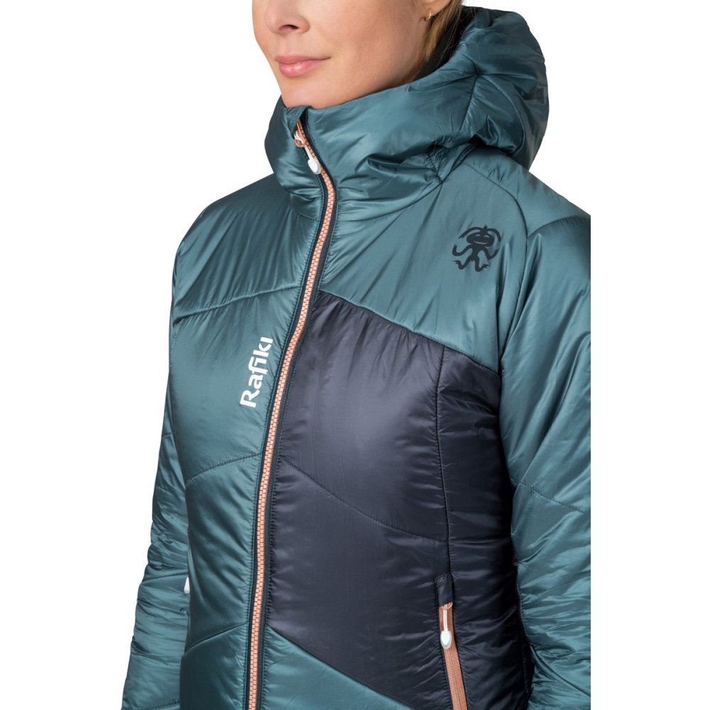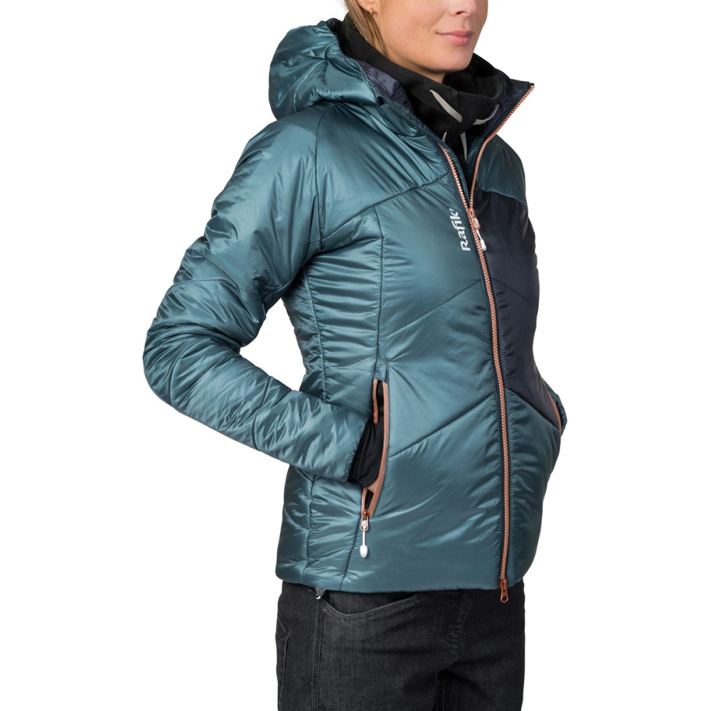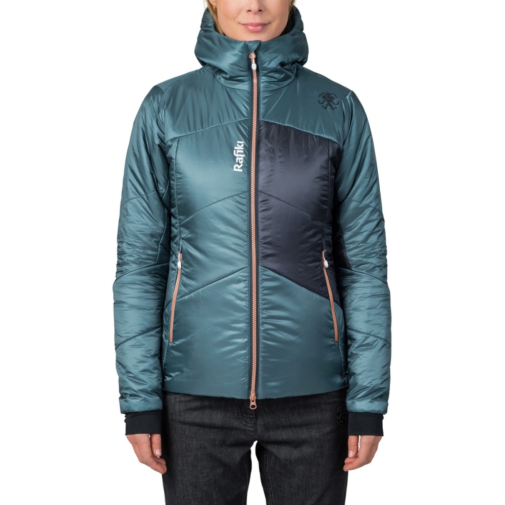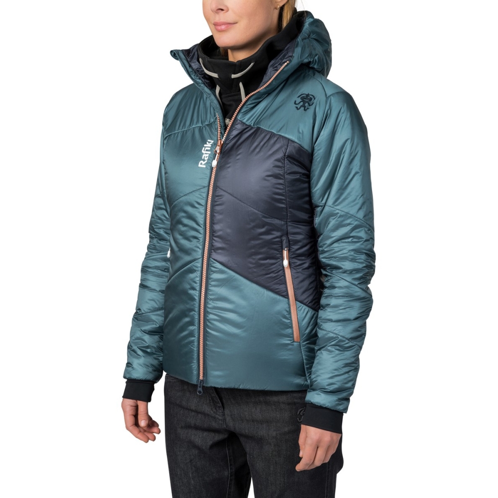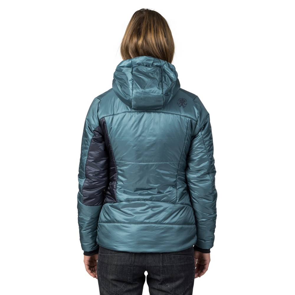 Opravdu lehká dámská anatomicky střižená lezecká zateplovačka s asymetrickým členěním, kterou si oblíbíš pro podzimní a zimní výjezdy na skály.