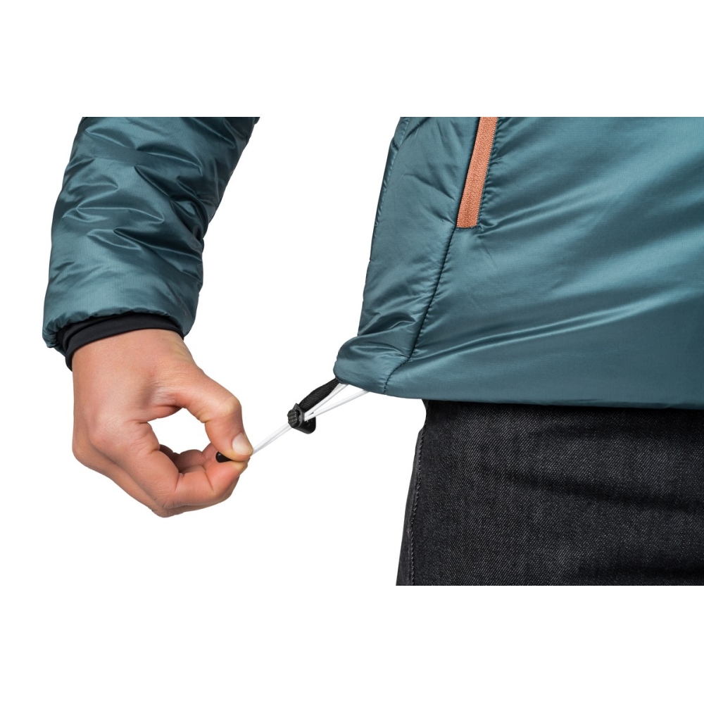 Výplní je prověřený a ekologicky udržitelný izolační materiál DuPont Sorona, který má minimálně 30% obsah přírodní složky (kukuřičné slupky) a navíc jeho výroba je energeticky šetrná. Svrchní rip-stop materiál má DWR úpravu pro lepší voděodolnost.