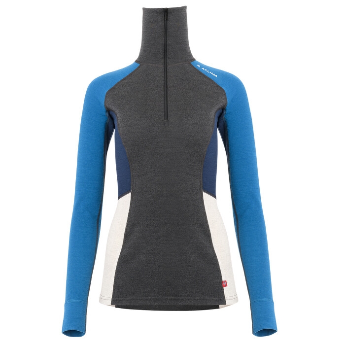 Dámský funkční pulover z merino vlny je z řady WarmWool, která je asi nejoblíbenější sérií prádla značky Aclima. Pulover s dlouhým rukávem a vysokým límcem vás udrží v teple v chladných dnech, zejména krásně hřeje kolem krku, a to díky 3/4 zipu. Naopak v případě přebytečného tepla, se jej můžete díky zipu snadno zbavit. Pulover se hodí na všemožné aktivity, především pak na turistiku a dlouhé procházky, protože vlna velmi dobře dýchá a reguluje tělesnou teplotu. Švy jsou ploché, aby se minimalizovalo riziko podráždění a oděrů. Vlákno je pletené z příze o velikosti 19,5 micronů. Díky tomu, že je vlna přirozeně antibakteriální, nespěchejte s praním. Stačí oděv pověsit na vzduch a pak je připraven k opětovnému použití. 3/4 zip pro snadnou a efektivní regulaci teploty. Žebrované boční panely.