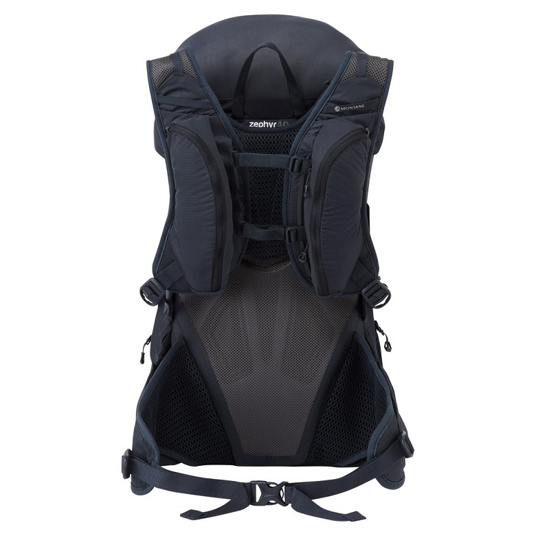 Podél předního panelu modulární systém háčků T-Hook k variabilnímu uchycení trekových holí vpředu nebo na boku, bungee systém uchycení, extra kompresní popruh.