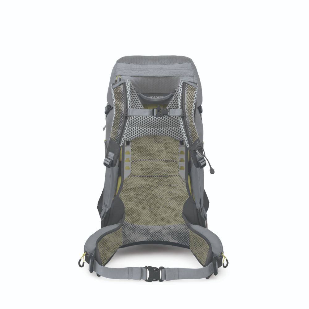 Nový zádový systém Airspeed je inspirovaný oblíbeným systémem AntiGravity ™. Vylepšení představuje širší, vyšší a pevnější rám jedné velikosti přesně pro ženskou postavu. Nová nastavitelná délka trupu zlepšuje ventilaci. To vše pro vaše maximální pohodlí.