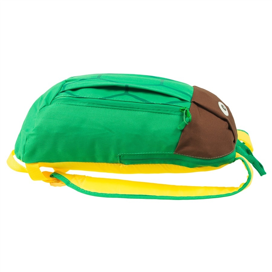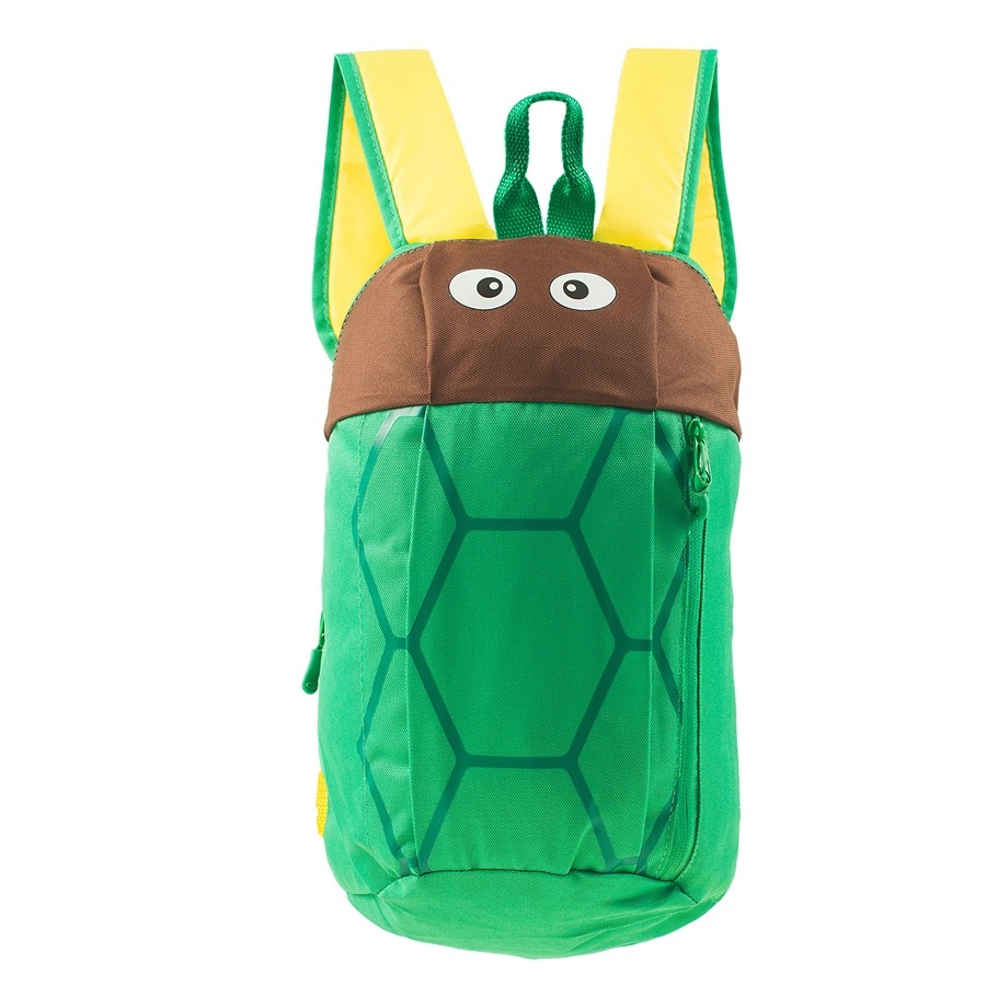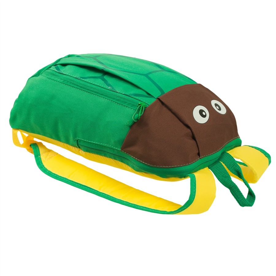 Lehounký dětský batůžek s motivem zvířátka – želva. Nastavovací popruhy, polstrovaná záda, hlavní úložný prostor + přední kapsa a vnitřní elastický držák na lahev.