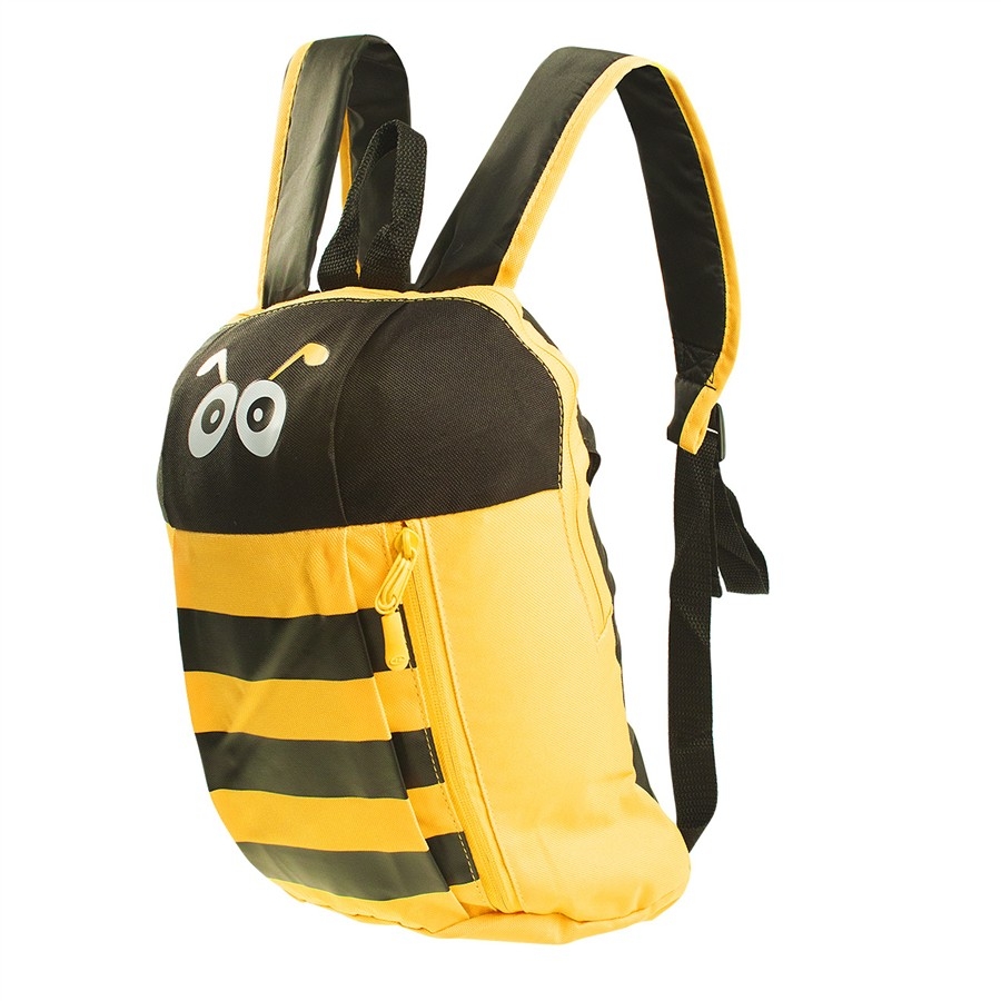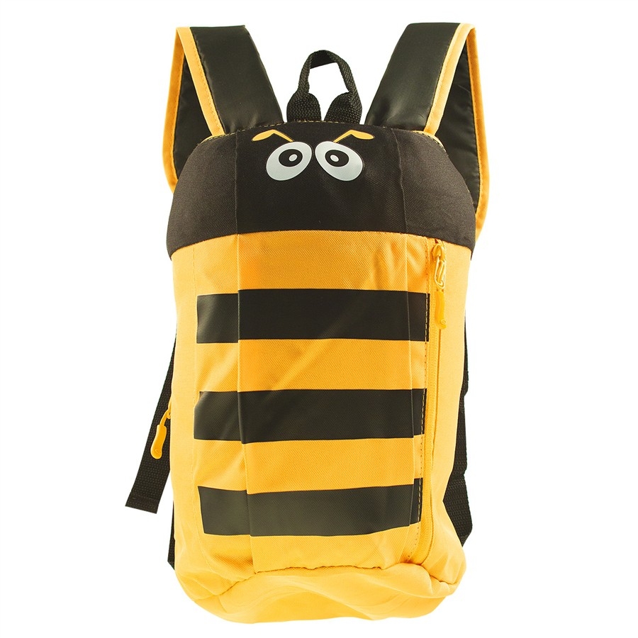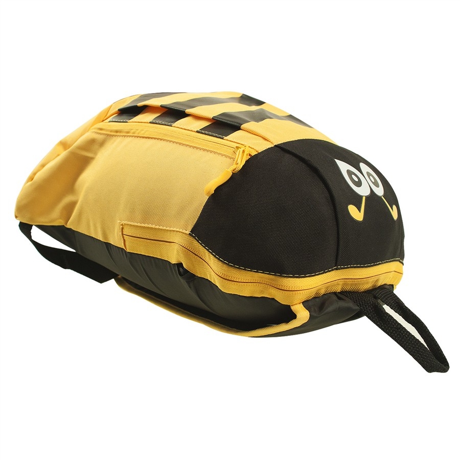 Lehounký dětský batůžek s motivem zvířátka – včelka. Nastavovací popruhy, polstrovaná záda, hlavní úložný prostor + přední kapsa a vnitřní elastický držák na lahev.