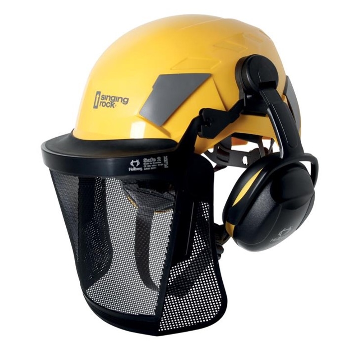 Je kompatibilní s helmou Singing Rock FLASH a je vybaven gumovým lemem, který kryje prostor mezi helmou a štítem před deštěm, létajícími pilinami a jinými částicemi.