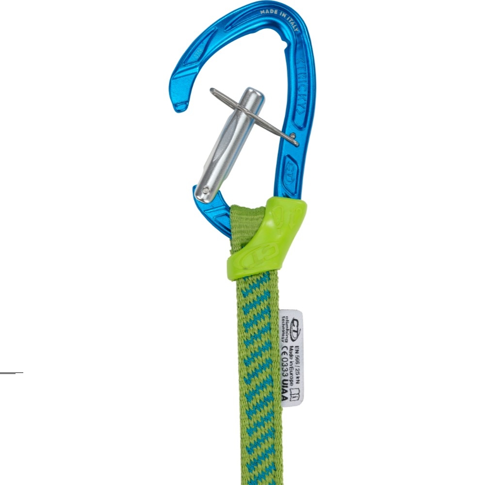 Díky páčce TRICKY LEVER, která je plně integrovaná v těle karabiny, zůstane zámek karabiny otevřen a ty ji tak snadno zacvakneš do vzdáleného jistícího bodu. Páčka karabiny drží zámek otevřen a automaticky se uvolní když je systém zatížen směrem dolůl. Oko na spodu smyčky je dobře uchopitelné a snadno ho využiješ k hákování. Smyčka je zpevněná ale dostatečně flexibilní, aby se pohodlně nosila na sedáku, protože zacvaknutím obou jejích konců na sedák dokážeš její délku redukovat na polovinu.