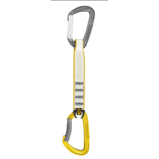 - Obsahuje horní rovnou karabinu s Keylockem a speciálně tvarovaným kovaným nosem pro snadné cvakání a vycvakávání karabiny z nýtu