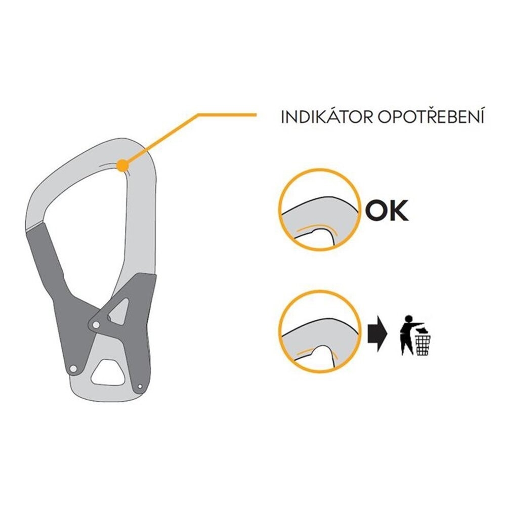 Ergonomicky tvarované Keylock karabiny PALM s indikátorem opotřebení jsou lehké a snadno ovladatelné jak pro děti, tak pro dospělé. Při únavě oceníš centrální oko pro odsednutí s pevností 12 kN. Pro případ pádu je uvnitř ochranného pouzdra umístěn štítek s indikátorem aktivace tlumiče, který upozorní na nutnost výměny. Maximální brzdná délka tlumiče při extrémním vypárání činí 170 cm.
