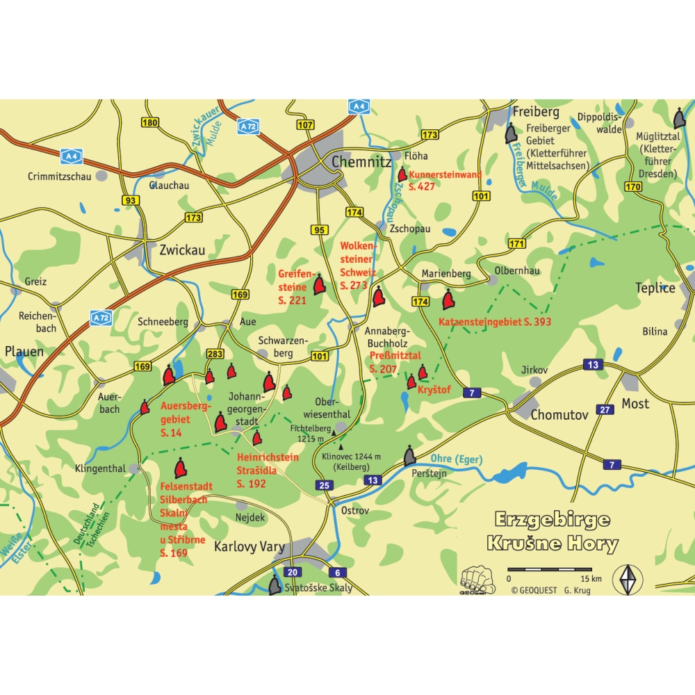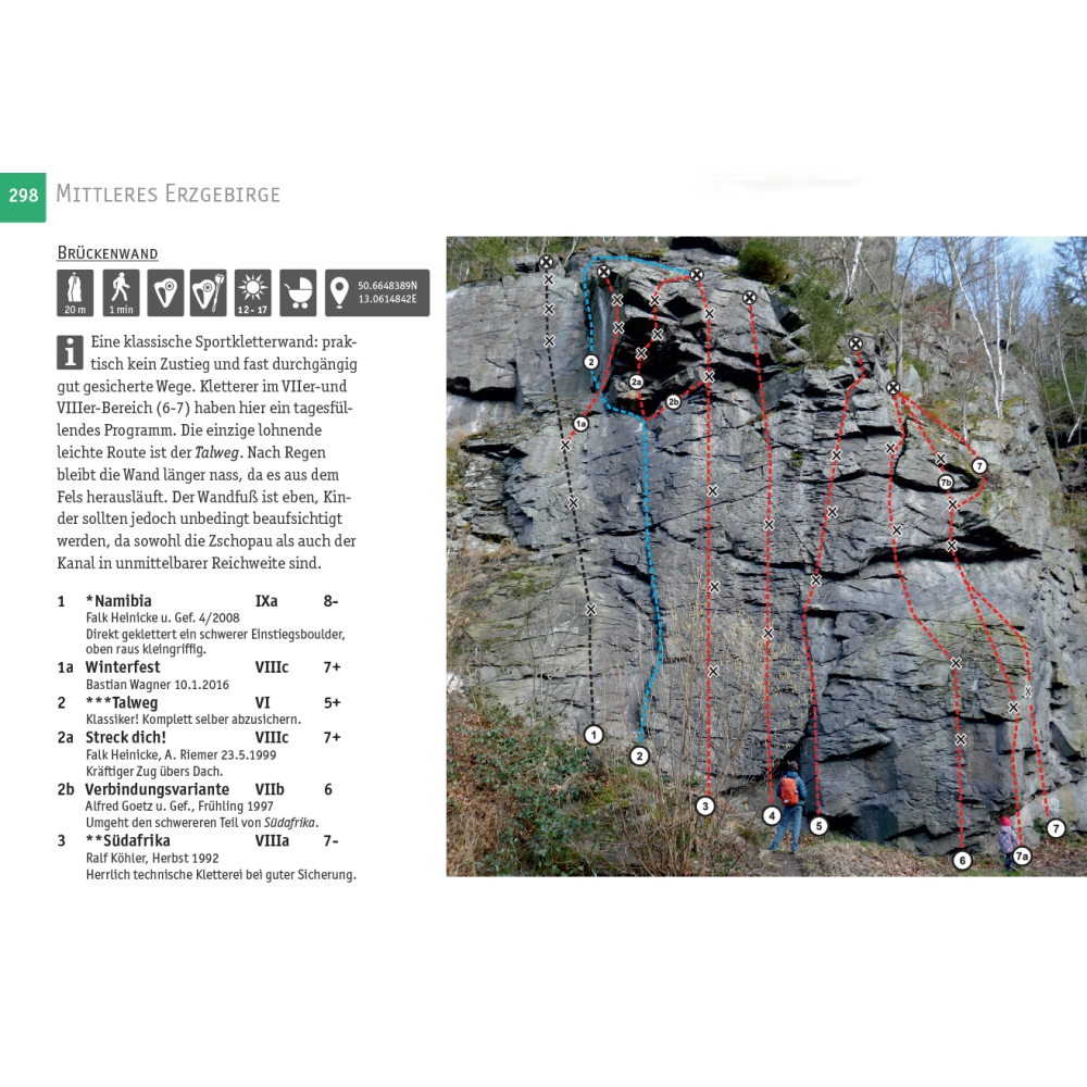 Nové vydání podrobně představuje všechny lezecké oblasti v Krušných horách. S výjimkou údolí Müglitz, které je popsáno v horolezeckém průvodci Drážďany a okolí, který všel koncem léta (září) 2023.