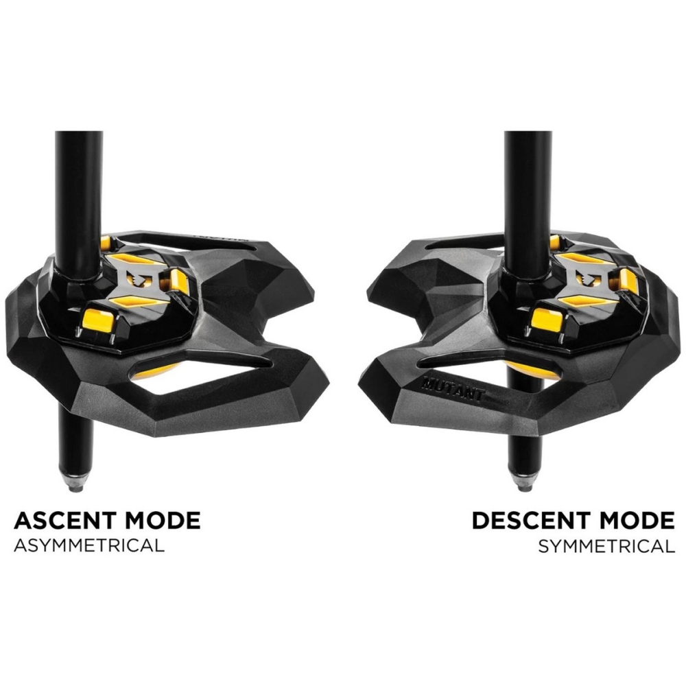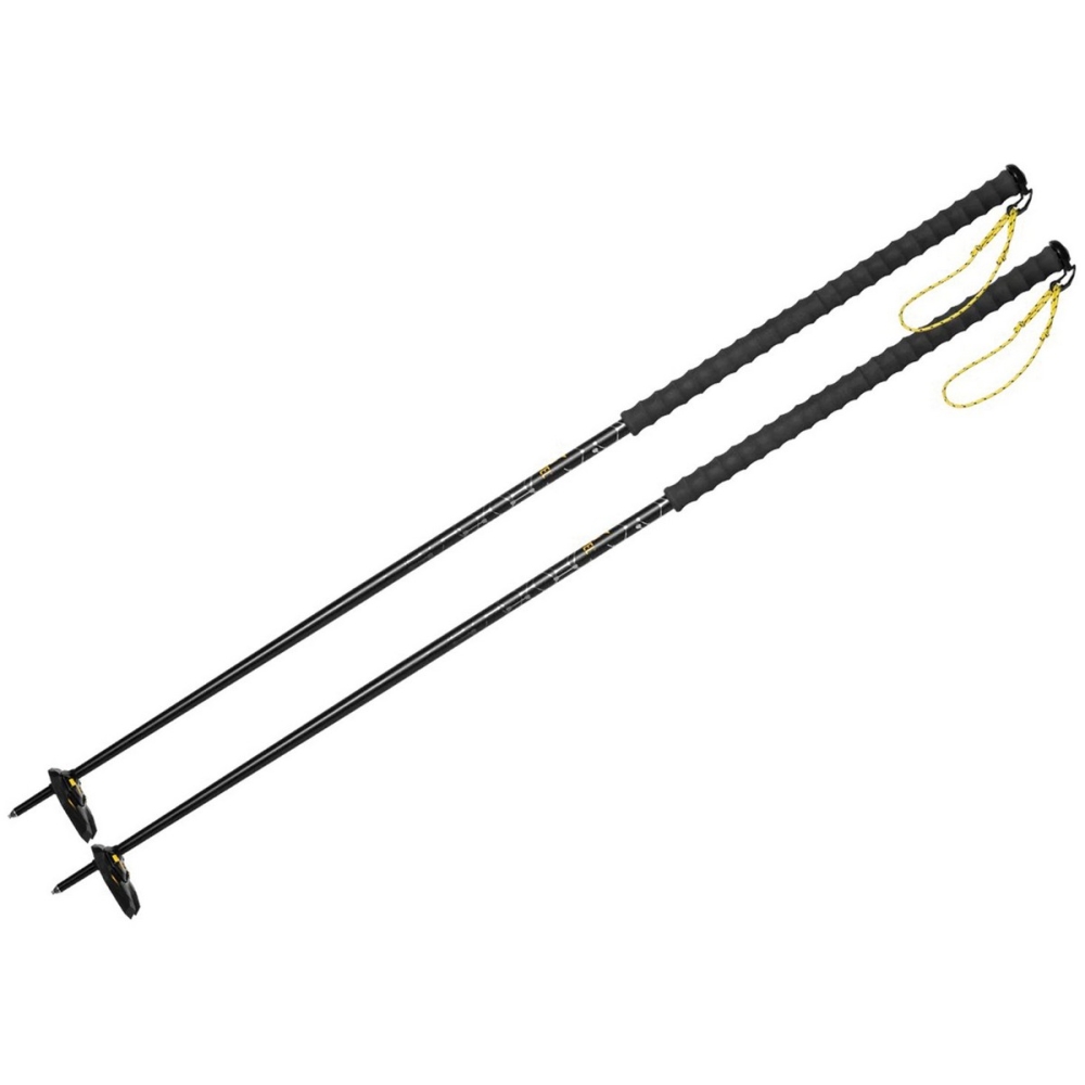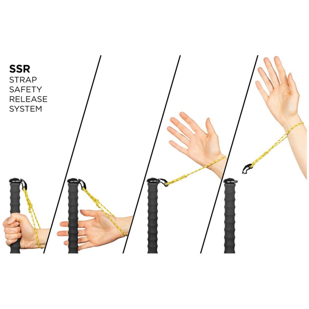 Jednoduchý a elegantní design. Vyrobené z lehké a odolné slitiny hliníku s dlouhou pěnovou rukojetí. SSR systém uchycení popruhu na rukojeti - při zatažení za popruh ve směru nad 90° se popruh uvolní. Tento systém byl vytvořen pro bezpečnost v případě laviny.