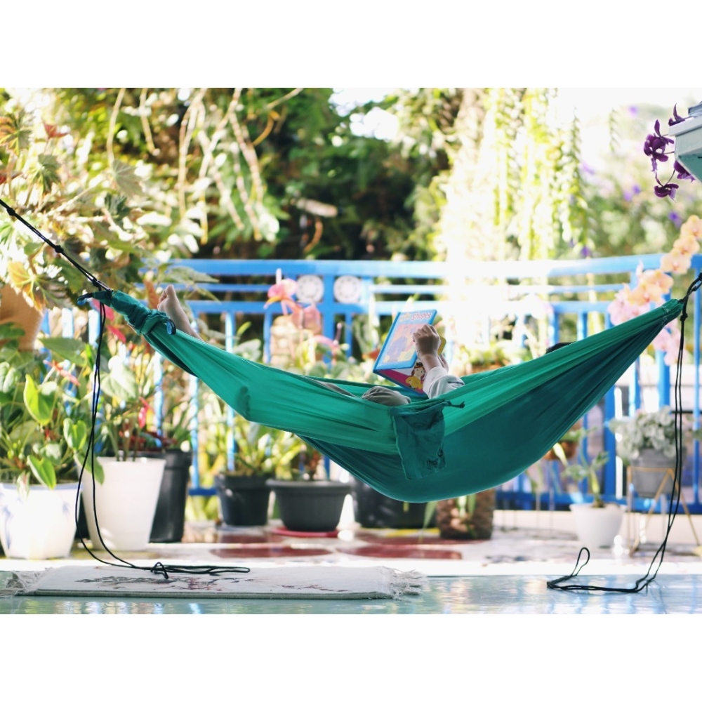 Taška Express Setting Bag pro každý produkt se stane polštářem a praktickou taškou pro uložení příslušenství zároveň. Houpací síť je vybavena ocelovými S-háky na zavěšení.