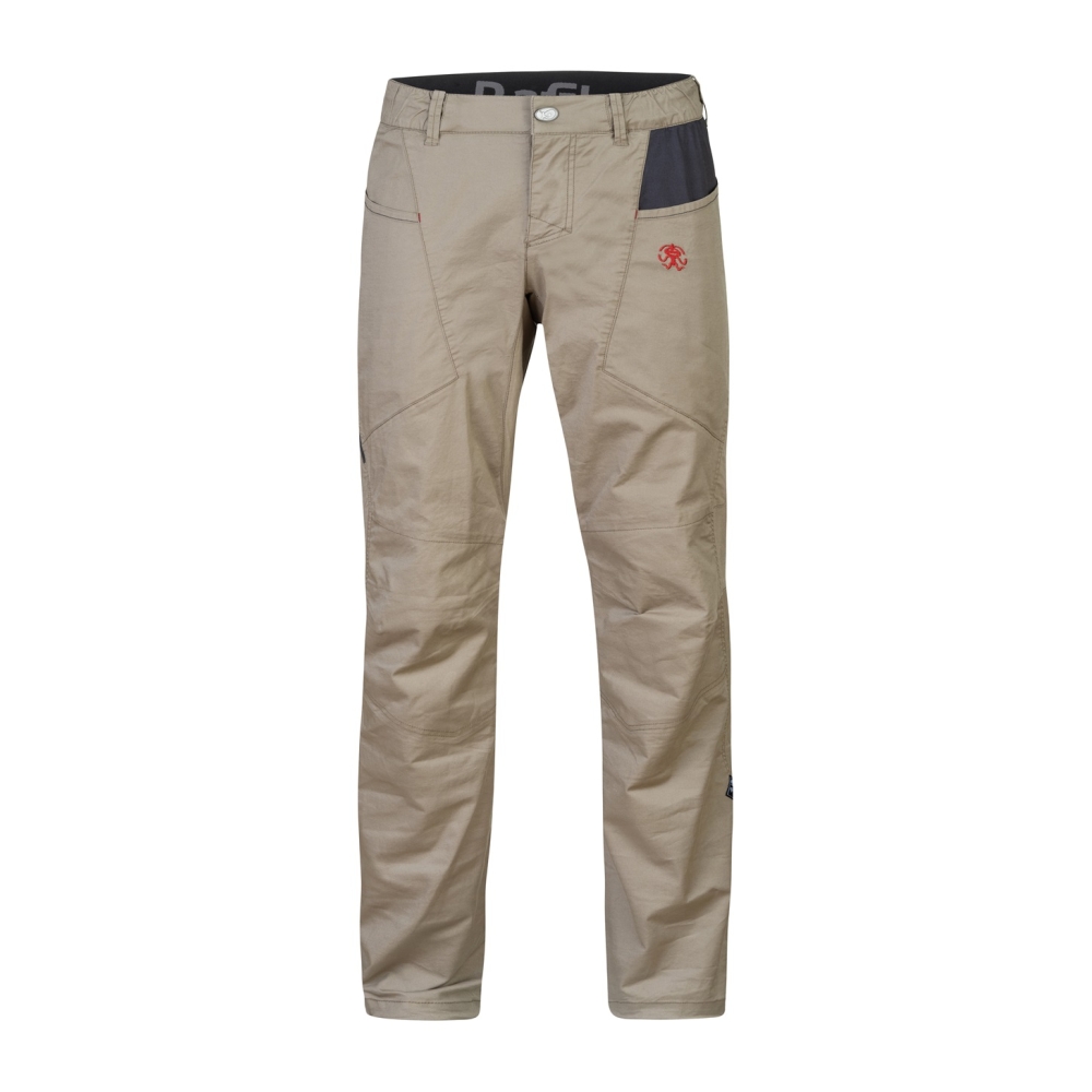 Pánské lezecké kalhoty Crag dostaly do vínku to nejlepší z kraťasů Megos. Jsou to plně funkční kalhoty, které unosíš po celý den. Pevnější, ale pružný materiál z bavlny a elastanu ti dovolí vrhnout se na skálu a zdvojená anatomicky tvarovaná kolena přináší zvýšenou odolnost.nbDíky propracovanému střihu tě nebude nic omezovat. Drobnosti schováš do opravdu prostorných předních kapes, kapsička na kartáček je samozřejmostí, ale top je kapsička se zipem na boku stehna. Třeba na telefon. Kalhoty mají poklopec, gumu v celém obvodu i poutka na pásek.
