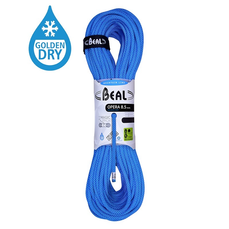 Revoluční lano Opera o tloušťce 8,5mm lze použít jako single, poloviční i dvojité lano. Vynikající kompromis váhy, ovladatelnosti a pevnosti s nízkou rázovou silou a velkým počtem zachycených pádů