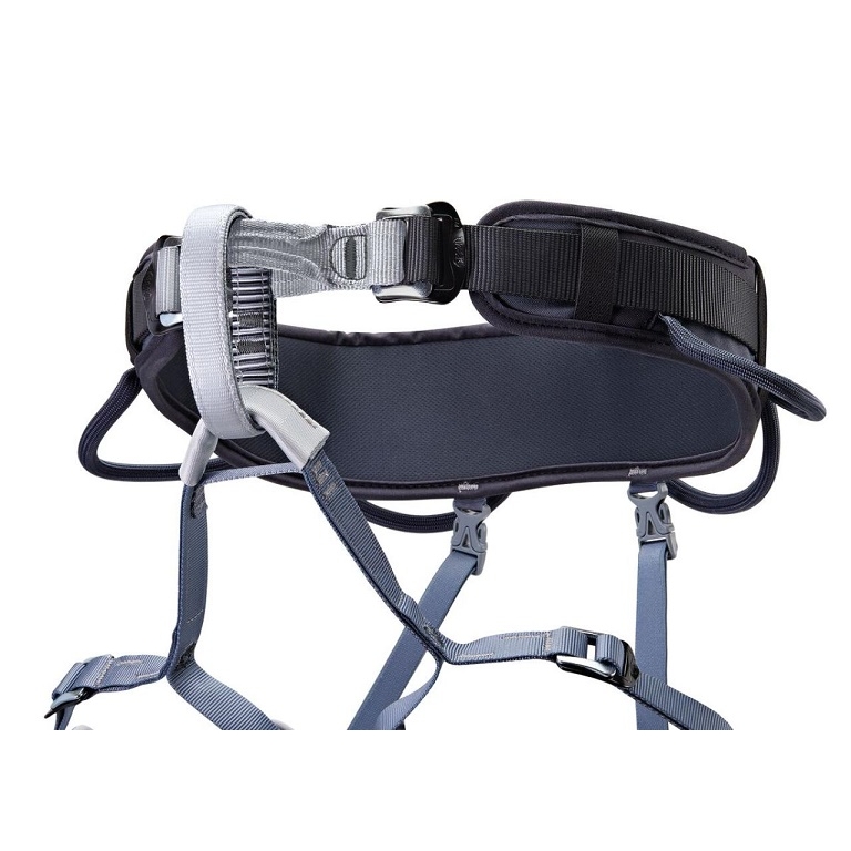 Pás vybavený dvěma přezkami DOUBLEBACK pro snadné nastavení a vycentrování připojovacího bodu, udržuje poutka v poloze, která je snadno přístupná. Nastavitelné nožní popruhy umožňují snadné přizpůsobení úvazku různým typům těla a oblečení.
