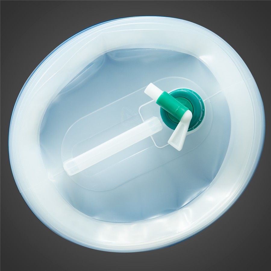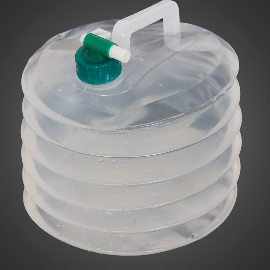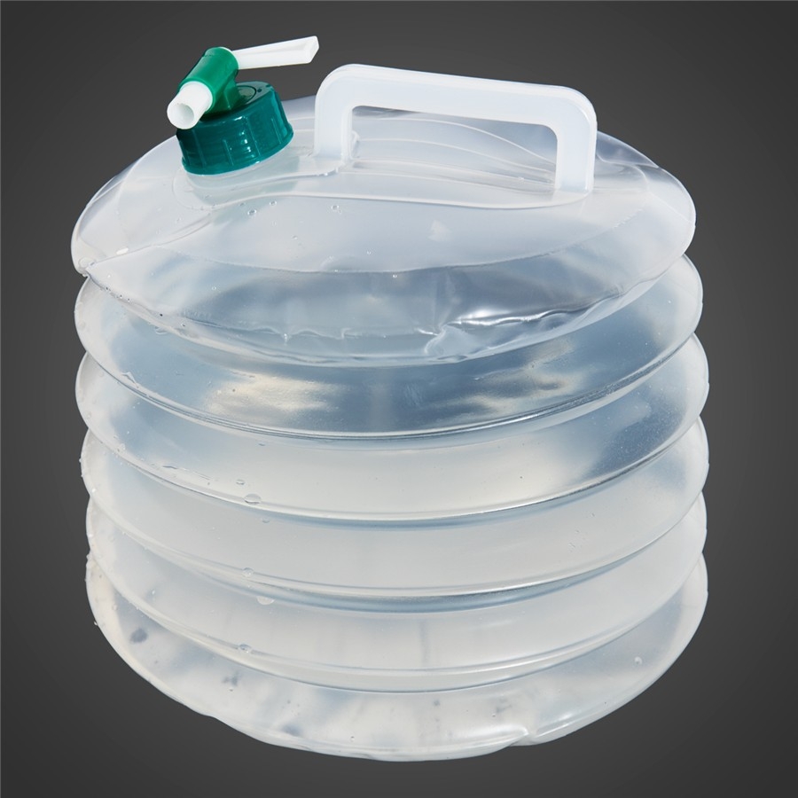 Plastový skládací kanystr vybavený uzávěrem s kohoutkem pro pohodlné natočení vody nebo umytí rukou.