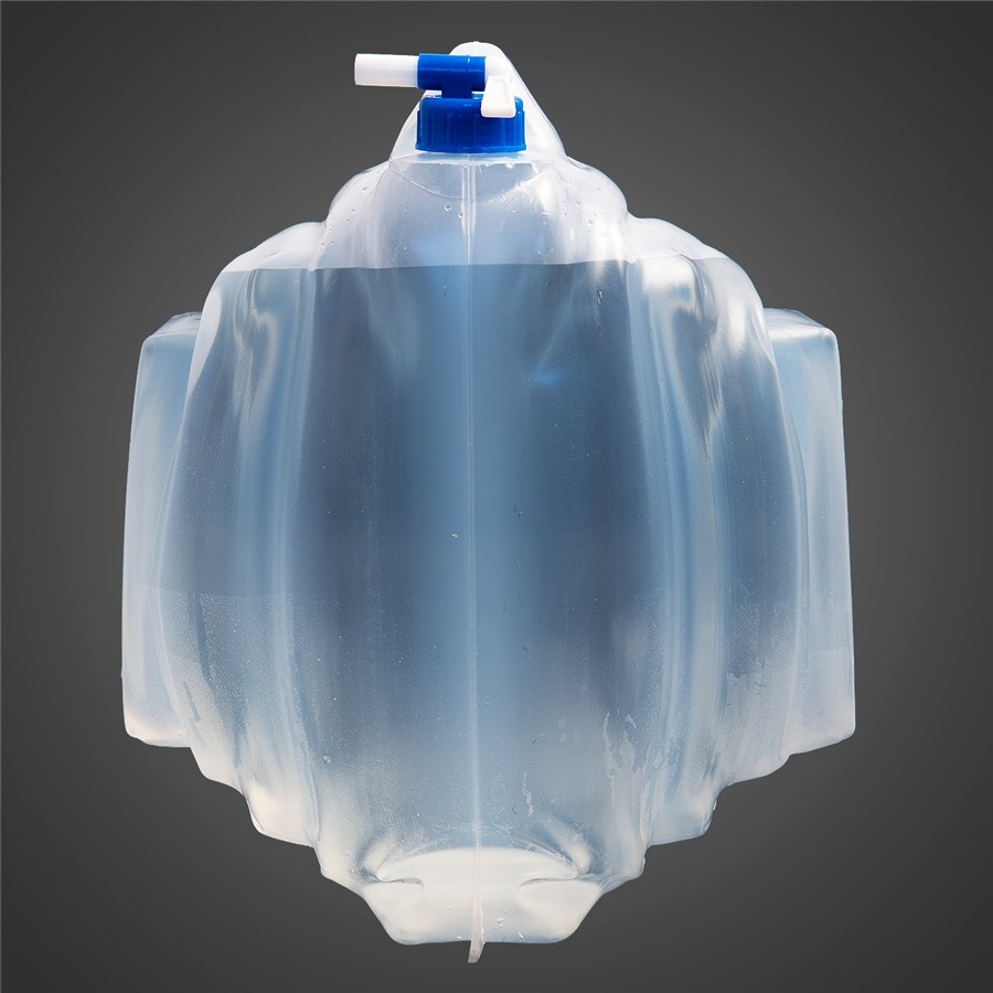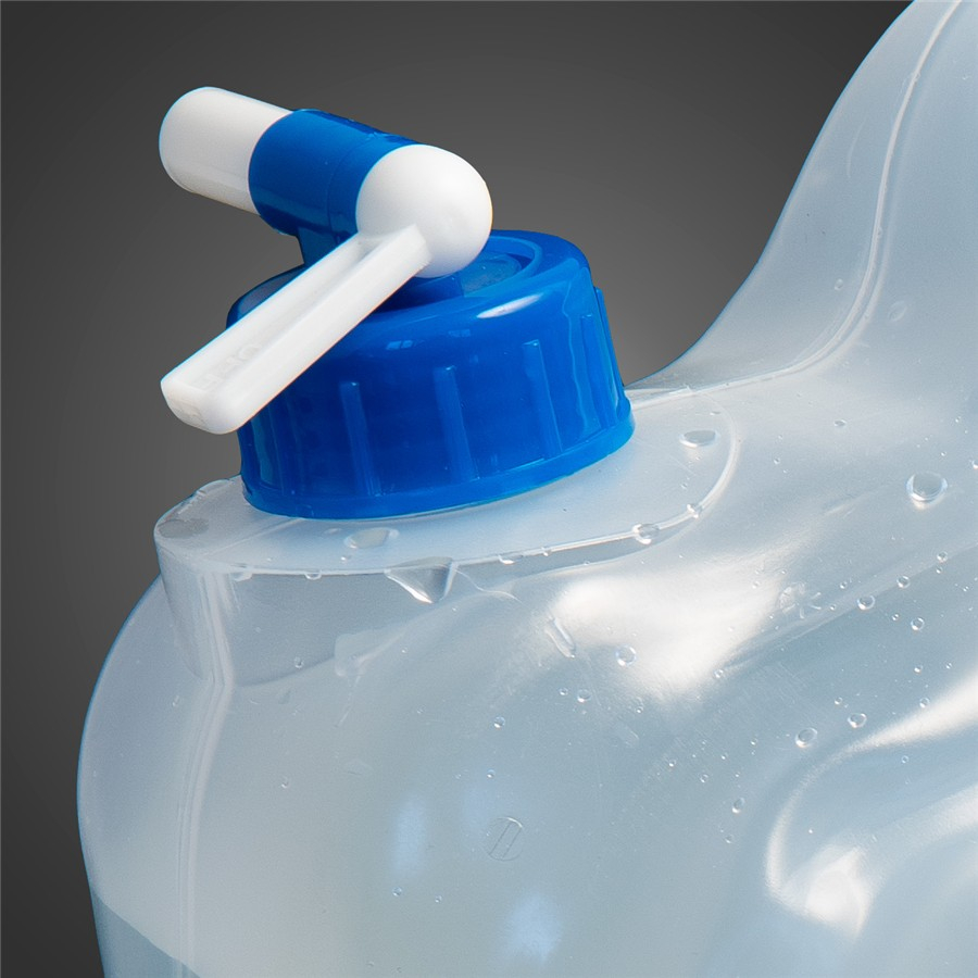 Plastový skládací kanystr vybavený uzávěrem s kohoutkem pro pohodlné natočení vody nebo umytí rukou.