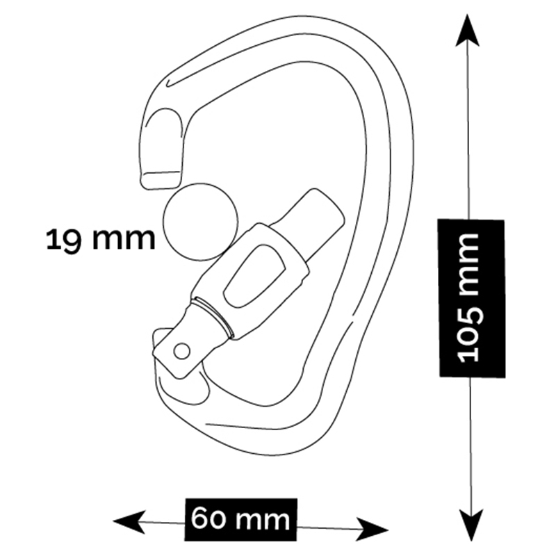 Asymetrická "D" keylocková karabina se šroubovacím zámkem, upraveným pro pevné dotažení klíčem (14). Karabina Be Quick je vhodná pro zajištění ve štandu.