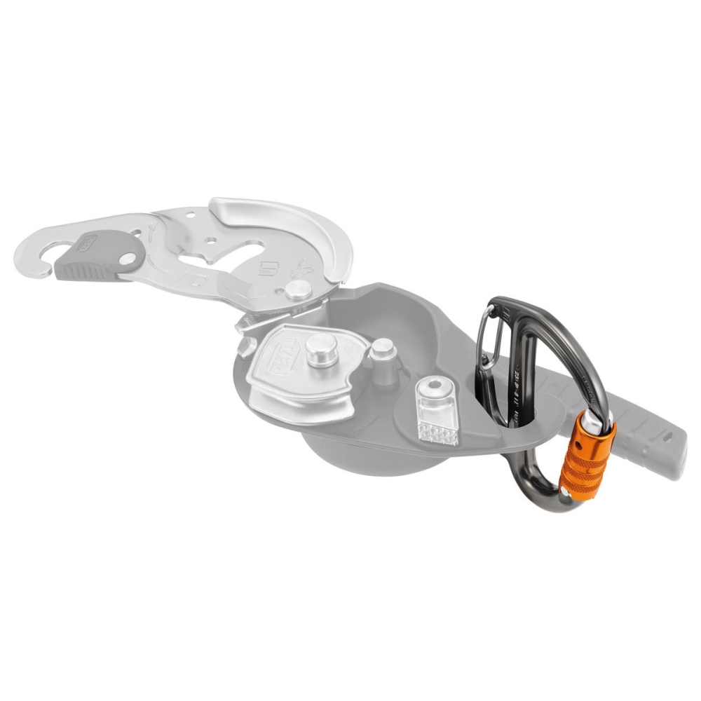 Karabina s pojistkou zámku a ostruhou pro slaňovací brzdy