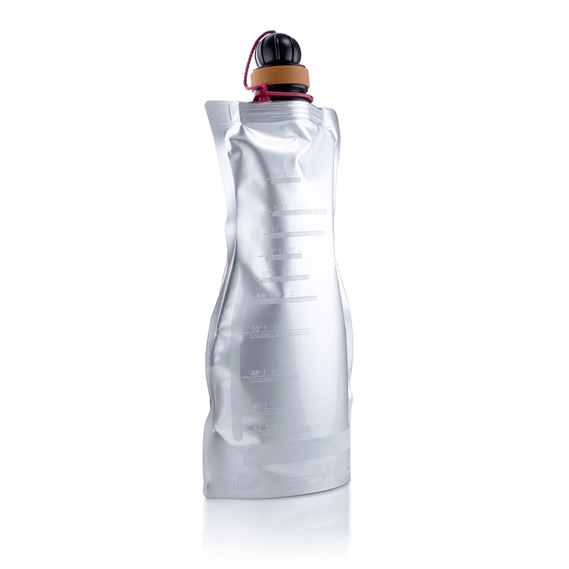 Inovativní a stylová skládací karafa na červené víno. Jedinečný 2 stupňový uzávěr, široké hrdlo pro snadné plnění a malé hrdlo pro rozlévání nápoje. Karafa obsahuje štítek pro popis obsahu a data naplnění.