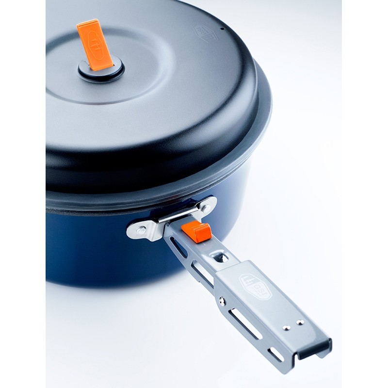 Pohodlná skládací odnímatelná rukojeť zpříjemní vaše vaření. Hrnek s pítkem je opatřen neoprénovým termoizolačním obalem. Pánev může také sloužit jako poklička.