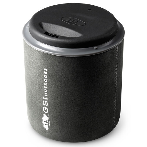 Hrnec o objemu 0,6 litru je vyroben z eloxovaného (anodizovaného) hliníku, který je odolný, rychle vede teplo a zároveň nepřilnavý – skvělé i pro rozpouštění sněhu. Místo klasických držadel využijete praktickou silikonovou „chňapku“, kterou lze pomocí magnetu uchytit přímo na plynovou kartuši. Nechybí skládací nerezový spork a neoprenový návlek, který promění hrnec v hrnek na teplý nápoj.