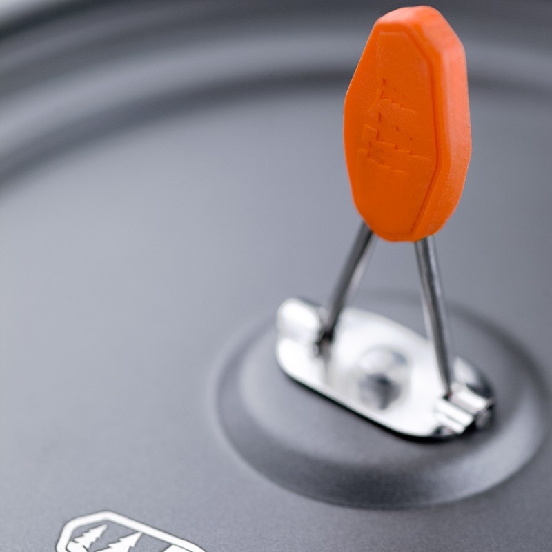 Ultralehký, odolný a kompaktní kotlík na vaření s odklápěcí rukojetí, která slouží nejen k manipulaci, ale při sbalení bezpečně zajišťuje pokličku.