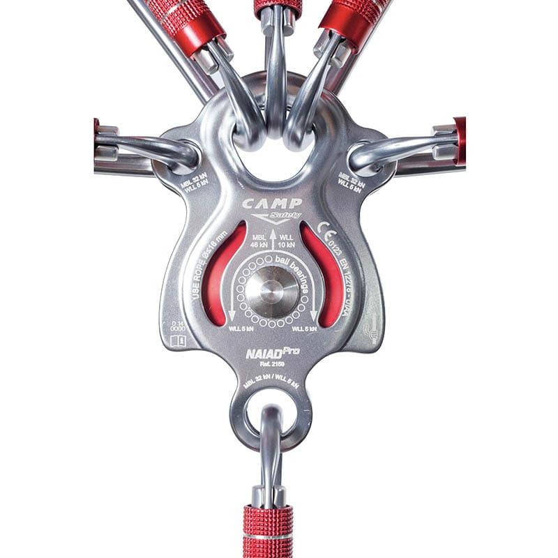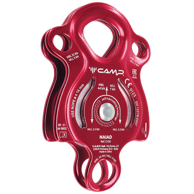 CAMP Naiad je multifunkční jednoduchá kladka se samomazným kluzným ložiskem a pevností 44 kN, navržená pro vysoká zatížení a například i pro zapojení do kladkostroje.