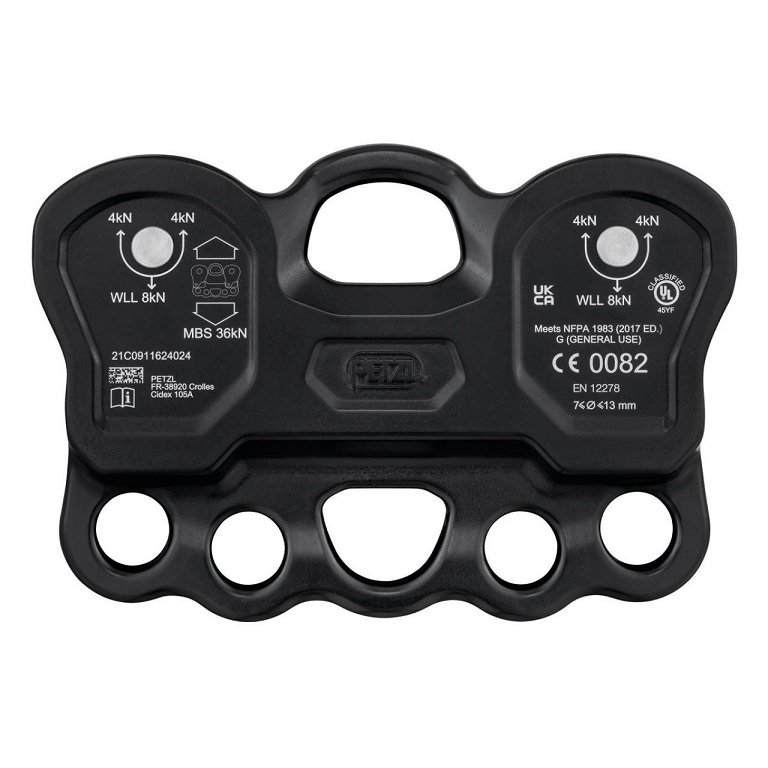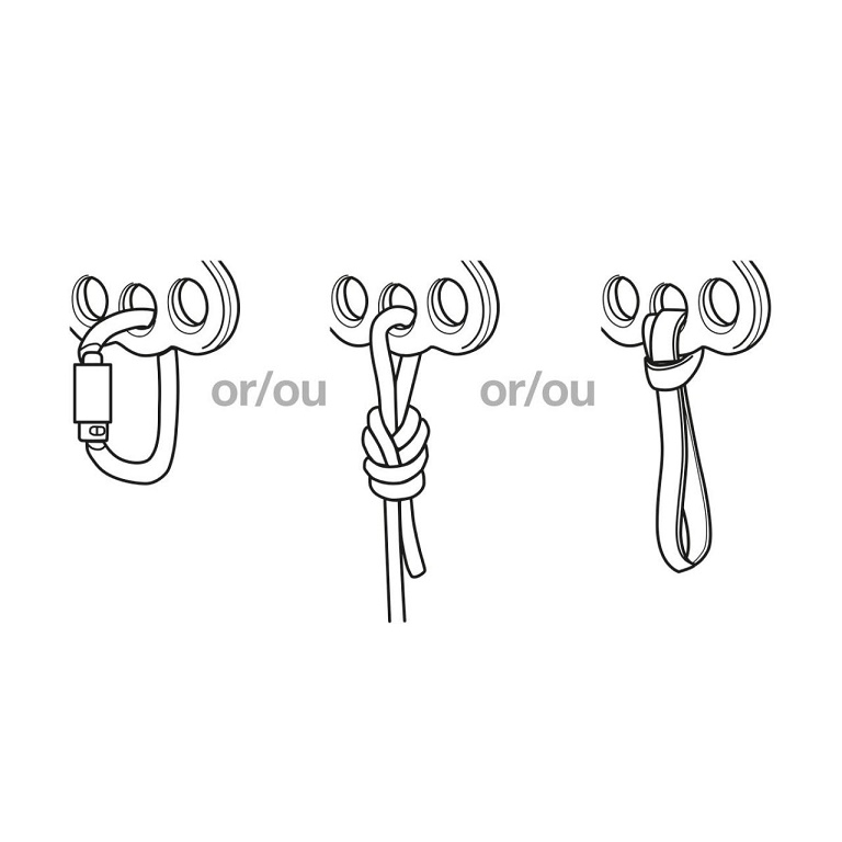 Konstrukce otvoru umožňuje provlečení lan a smyček pro přímé připojení bez karabin. Otvory o průměru 19 mm umožňují průchod pojistek zámku většiny karabin. Lichý počet připojovacích otvorů umožňuje vycentrování a vyvážení systému. Možnost připojení až tří osob současně.
