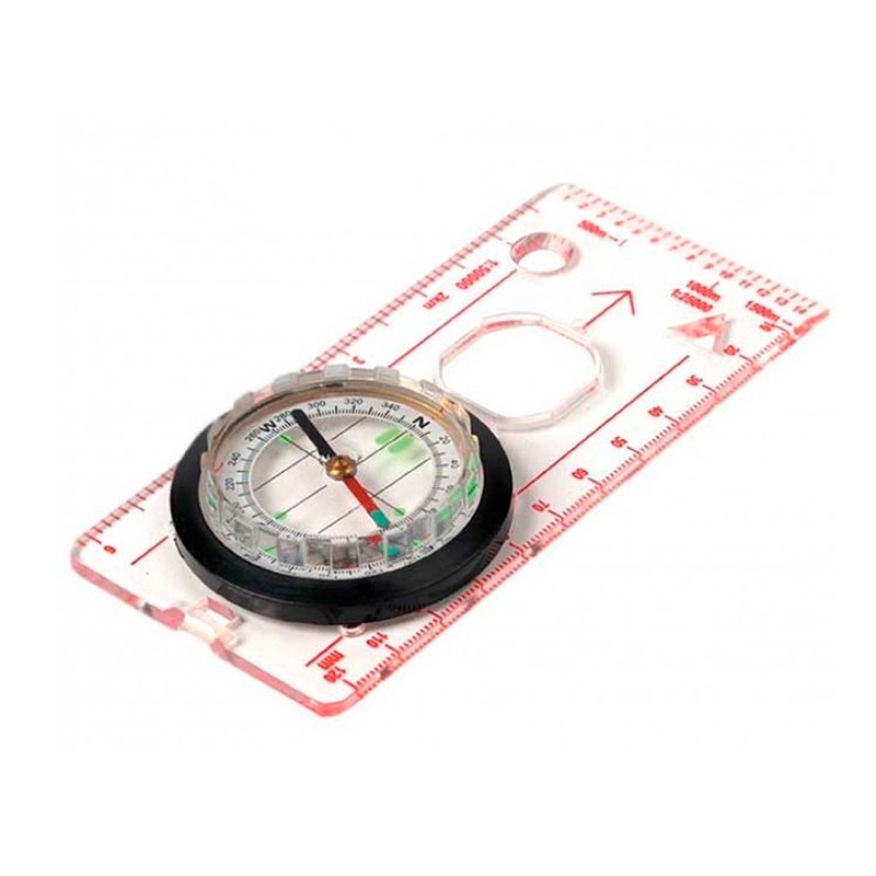 Klasická buzola s kompasem - nezbytný nástroj pro přežití ve volné přírodě a horách. Spolu s mapou pomáhá se správnou navigací a orientací v terénu. Na zaoblené základně buzoly najdete otočné kolečko kompasu s luminiscenčními body označujícími světové strany: sever - N (North), jih - S (South), východ - E (East) a západ - W (West) a poledníkové linie. Luminiscenční (svítící) body usnadňují práci ve tmě. Vyvážená kovová střelka kompasu v kapalinové kapsli (červená šipka) ukazuje na severní magnetický pól Země. Základní deska obsahuje také zvětšovací čočku, otvory pro zakreslování kontrol a měřítko v milimetrech. Součástí je žlutá šňůrka pro zavěšení na krk.