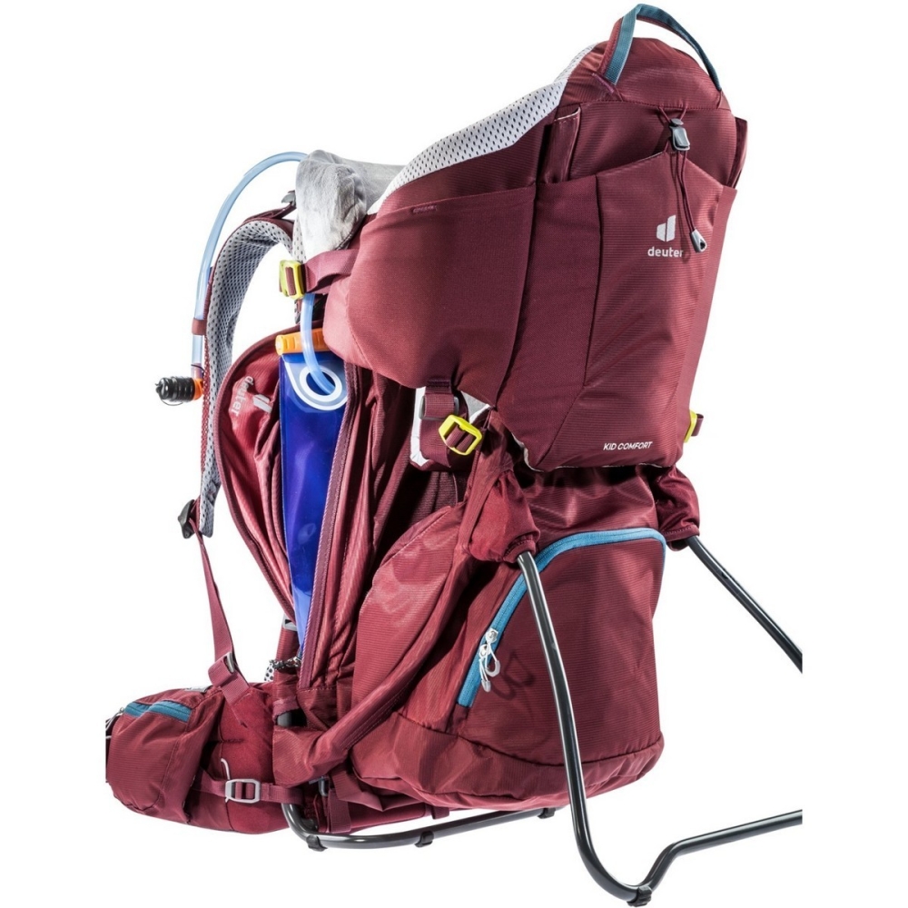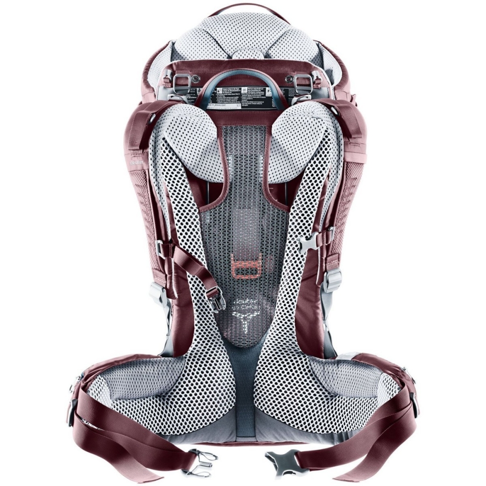 Důmyslný nový síťový systém opěradla Aircomfort Sensic Vario ještě více zpříjemňuje rodinám horská dobrodružství: zátěž se přenáší perfektně, dětský nosič sedí pohodlně, zatímco záda jsou plně odvětrávána. Dítěti je poskytnuto velké pohodlí: Velký měkký polštář jemně vzpírá hlavu unaveného dítěte i v rozích a podporuje relaxační spánek. Boční přístup a snadno přístupný systém pásů dětského rámu zajišťují bezpečnost - zaručeno bezpečnostní značkou TÜV GS.