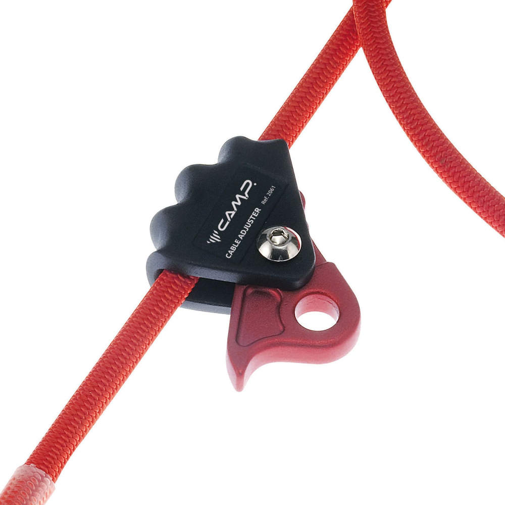 Ocelové jádro je chráněno inovativním dvojitým pláštěm – vnitřní vrstva zabraňuje posuvu pláště po povrchu kabelu a vnější polyesterová vrstva zajišťuje hladký chod v polohovacím zařízení. Vnější průměr lanyardu činí 13 mm. Polyuretanový povrch zvyšuje nosnost a odolnost proti opotřebení. Lanyard je vybaven jednoduchým blokantem pro snadné nastavení délky a dlaňovou karabinou CAMP Hercules pro bezpečné a pohodlné připojení.