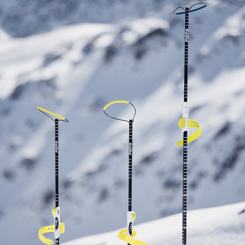 Lavinová sonda Pieps z karbonu, vyráběná v délkách 220, 260 a 300cm. Sonda umožňuje velice rychlé sestavení díky širokému poutku a náběžným hranám - sondu lze složit i za letu. Ke stažení slouží praktický silikonový pásek.