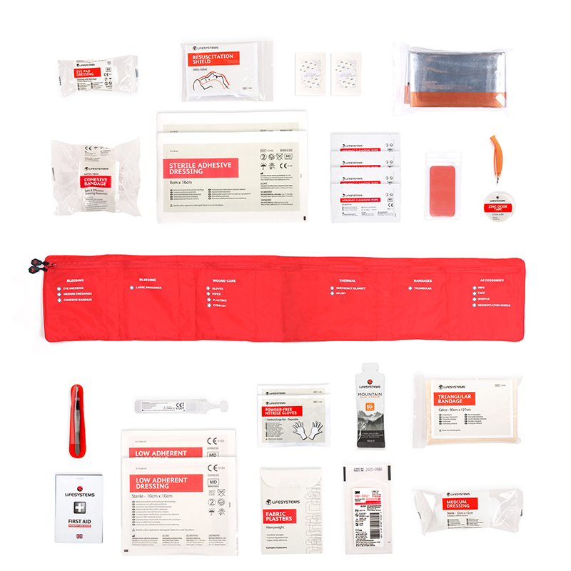 Ideální na výlety, traily i vícedenní cykloturistiku. Odolné rolovací pouzdro z voděodolné textilie chrání obsah i v náročných podmínkách. Šest vnitřních kapes umožňuje přehledné uspořádání a rychlý přístup k potřebnému vybavení. Součástí sady jsou nejen základní pomůcky pro ošetření drobných poranění, ale i speciální vybavení – tvarovatelná dlaha na prsty, fyziologický roztok na výplach očí, resuscitační rouška nebo termoizolační fólie. Nechybí ani kvalitní opalovací krém Lifesystems Mountain Sun Cream SPF 50+.