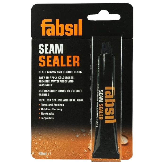 Fabsil Seam Sealer je flexibilní a spolehlivé lepidlo se snadnou aplikací. Vhodný pro všechny tkaniny, včetně nylonu, plátna, polyesteru nebo gumy. Výrobek je bezbarvý, voděodolný, zasychá do čiré barvy a trvale se váže na venkovní tkaniny, čímž obnovuje funkčnost vašich stanů a vybavení a zároveň je pratelný. Je ideální pro utěsňování a opravy stanů a markýz, outdoorového oblečení, batohů a plachet. Těsní švy. Opravuje trhliny. Pro všechny tkaniny, včetně nylonu, plátna, polyesteru a gumy.