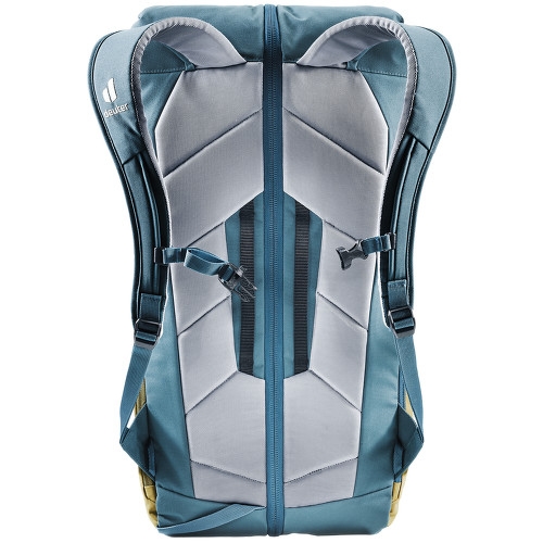 Když se nevejde vše dovnitř, využijete praktická poutka – uvnitř na expresky, venku na další lezecký materiál. Polstrované zádové panely a hrudní pás se postarají o komfort i při plně naloženém batohu.