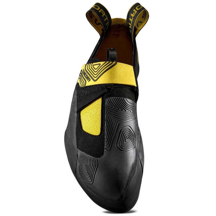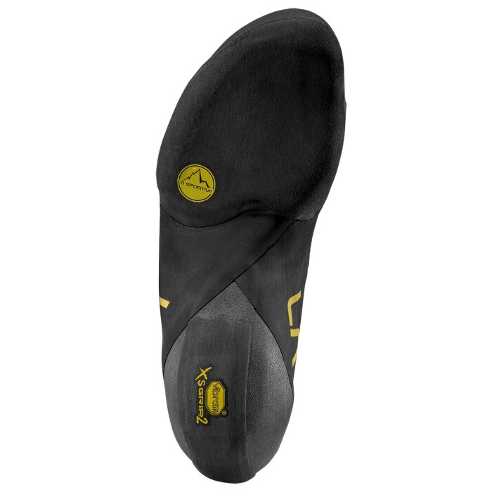 Podešev Vibram® XS-Grip2 s odlišnou tloušťkou ve špičce podporuje preciznost držení, zatímco pata s nižším objemem umožňuje maximální přesnost při patování. Gumová obsázka pokrývá 90 % přední plochy svršku, aby upřednostňovala zahakování na špičce při zachování přizpůsobivosti pro různé typy tvarů chodidel.